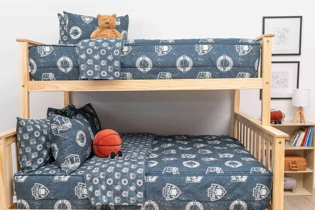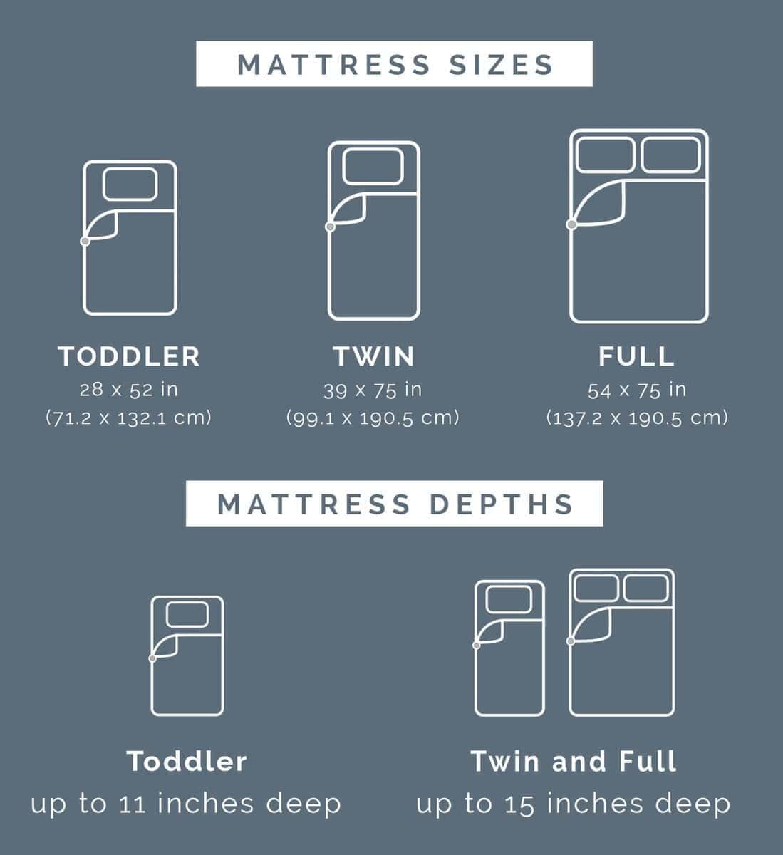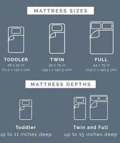 Todas las telas exteriores e interiores son 100% poliéster, lo que garantiza durabilidad y fácil cuidado. Las cremalleras revisten por completo el edredón superior, facilitando su extracción y lavado. Los tamaños de Nod & Winks de Beddy’s están diseñados para adaptarse a colchones de tamaño estándar y están disponibles en Tamaño de Niño, Individual y Doble.