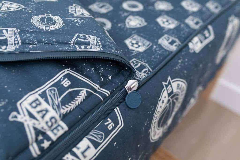 El conjunto de cama con cremallera Beddy’s y/o Nod & Winks no está destinado a niños menores de 3 años, y se recomienda que los niños entre 3-5 años duerman con al menos un lado de su ropa de cama con cremallera completamente abierta.