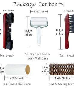 El Rodillo Adhesivo para Pelusa podría parecer una adición inusual en un kit de limpieza de mesa de billar, pero si limpia su mesa de billar regularmente, siempre encontrará algo de cabello en la mesa. El cabello más largo aún es fácil de barrer, pero el cabello más corto puede convertirse en una pesadilla. ¡Ahí es donde entra el Rodillo Adhesivo como un héroe! Hecho de madera maciza natural y material de nylon suave, el cepillo no solo tiene una apariencia elegante y refinada, sino que también limpia la mesa de billar de manera efectiva sin dañar la superficie. El paño de limpieza de taco pequeño y grueso está hecho de poliéster de alta calidad, con buena resistencia a las arrugas y alta recuperación elástica. Recibirás: 1 Cepillo para Mesa, 1 Cepillo para Rieles, 1 Rodillo Adhesivo para Pelusa con cubierta (con 1 núcleo), 1 Paño de Limpieza para Taco, 1 Núcleo de Repuesto. Las personas siempre están dispuestas a compartir cosas buenas con quienes las rodean. Para tu pareja, colega o vecino que juega billar contigo, este es definitivamente un regalo lleno de sorpresas porque es muy práctico.