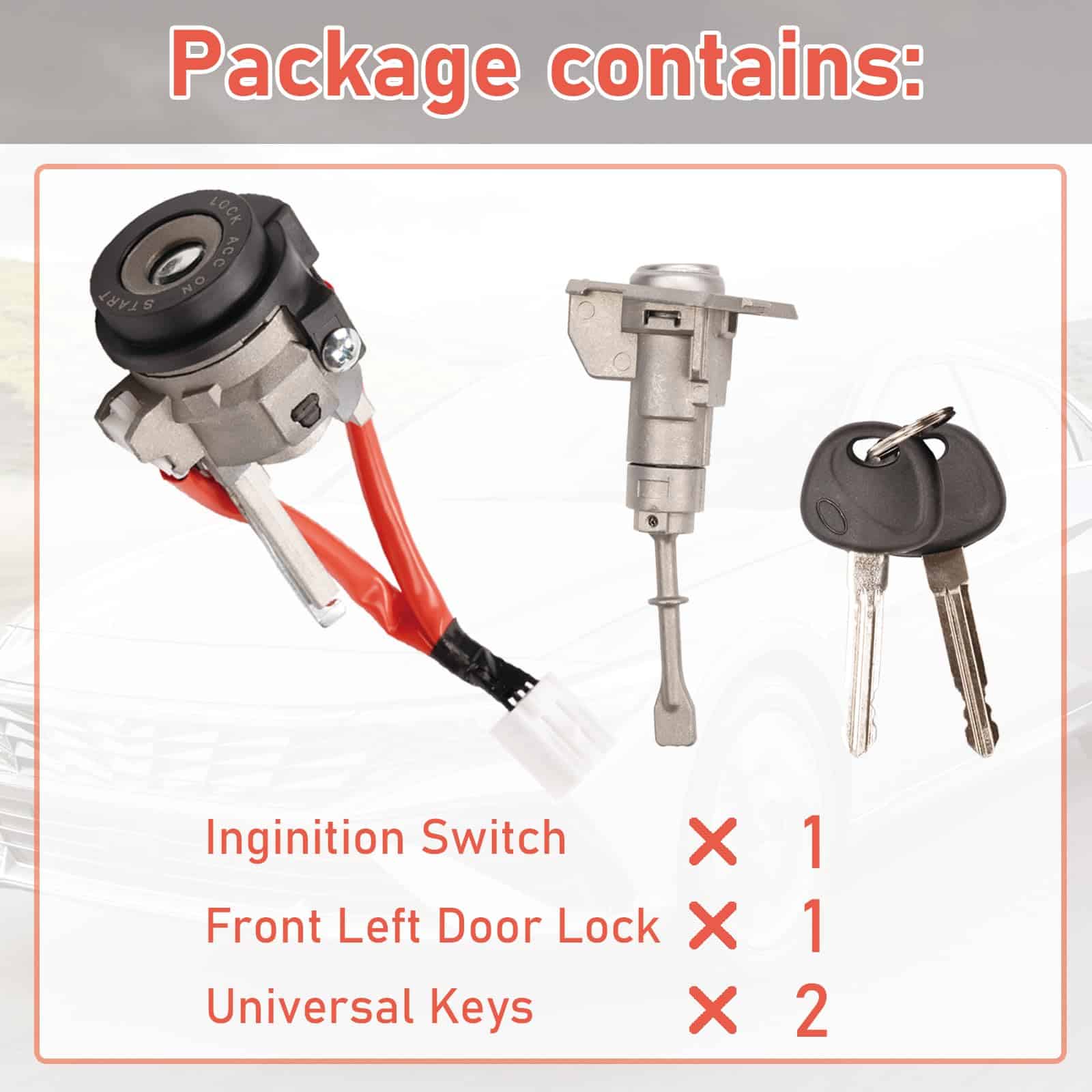 El paquete contiene cuatro componentes: 1 x Interruptor de Encendido, 1 x Cerradura de Puerta Delantera Izquierda y 2 x Llaves Universales (estas llaves son adecuadas para los dos tipos de cilindros de bloqueo mencionados anteriormente)