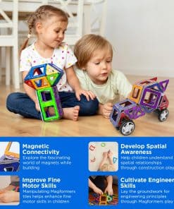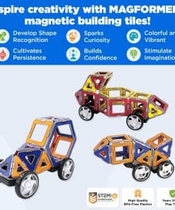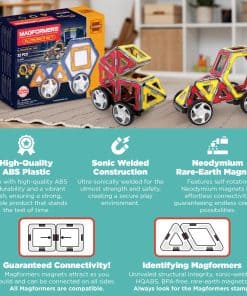 MAGFORMERS son fáciles de usar y nunca frustrantes. Los patentados imanes MAGFORMERS diseñados de manera inteligente están alojados en plástico ABS colorido y de alta calidad. Siempre se atraen y nunca se repelen, por lo que en el momento en que dos piezas se tocan, se conectan. Los imanes de alta calidad que se conectan al instante seguramente despertarán la curiosidad y el tiempo de juego es creativo, estimulante y constructivo. Construir con MAGFORMERS involucra el pensamiento matemático y científico, el razonamiento deductivo y requiere el uso de la conciencia espacial. Manipular los poderosos y coloridos imanes MAGFORMERS ES educativo, pero a pesar de ser una experiencia educativa, el juego es mágico y DIVERTIDO!