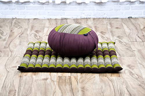Material: Los cojines de meditación para adultos están llenos de kapok. La fibra estable y transpirable utilizada para el conjunto de cojines de meditación permite una posición de asiento agradable y cómoda. Área de aplicación: Ambos cojines de yoga son el compañero perfecto para la práctica de la meditación y los ejercicios de yoga. La correa de transporte y la función de enrollado facilitan el almacenamiento y transporte. Características especiales: Gracias a la cubierta de algodón y sus dobles costuras, los cojines de meditación para sentarse en el suelo ofrecen durabilidad, estabilidad y un asiento suave con soporte para rodillas y tobillos. Nuestro nombre representa un diseño sofisticado. Los cómodos cojines de yoga Leewadee para sentarse en el suelo, todos nuestros productos y accesorios se fabrican de manera responsable en la artesanía tradicional tailandesa.
