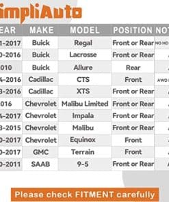 1. Compatibilidad: se adapta al frente o atrás, por favor verifique la compatibilidad cuidadosamente, el conjunto de cojinete de rueda delantero o trasero 513288 es compatible con Buick Lacrosse 2010-16, Buick Regal 2011-17, se adapta a Chevy Malibu 2013-15, Cadillac XTS 2013-16 {NO HD Brakes}, SAAB 9-5 2010-11, se adapta a Chevy Impala 2014-17.
