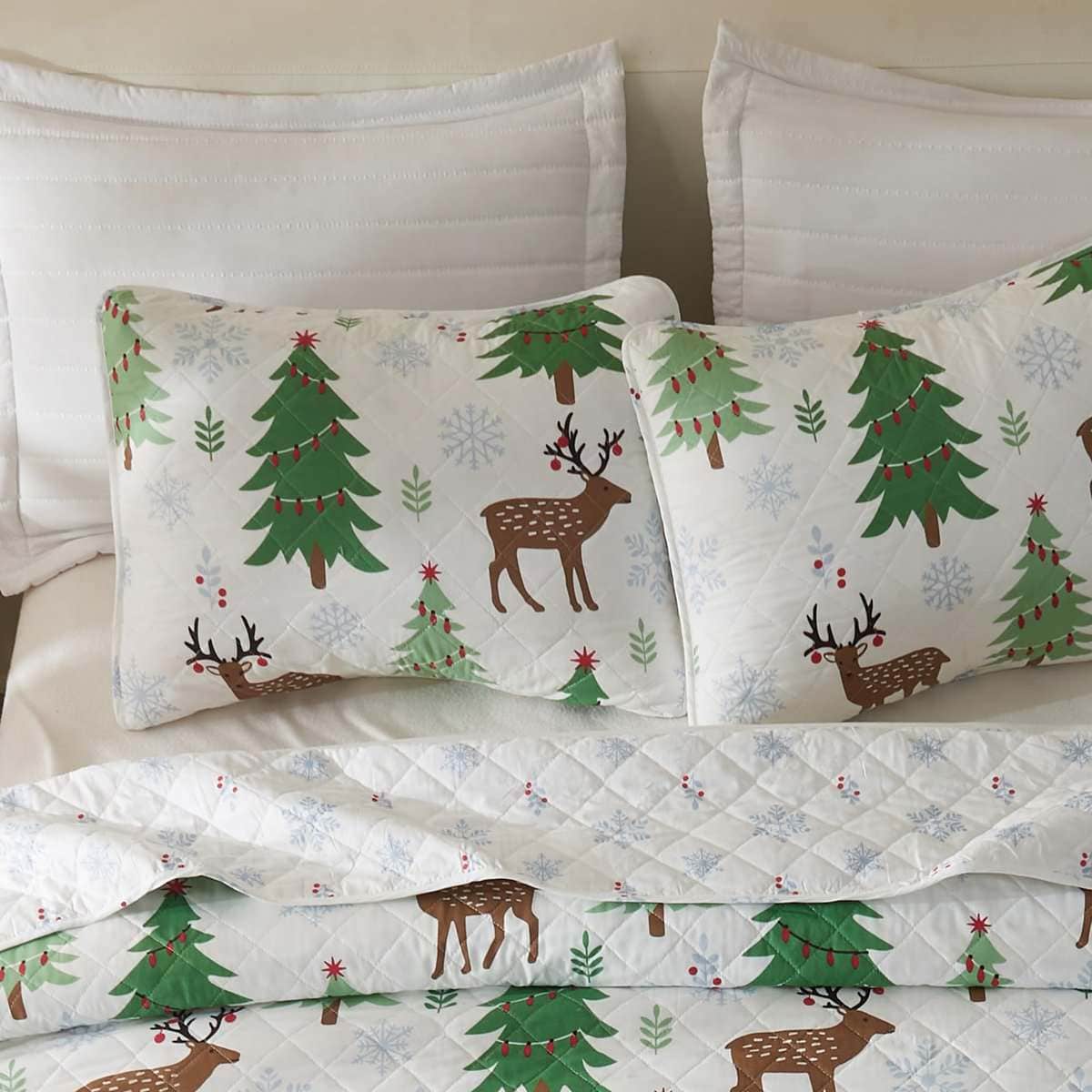 Conjunto de Colcha Navideña de 2 Piezas con Fundas.