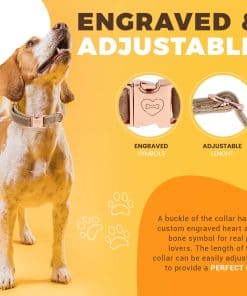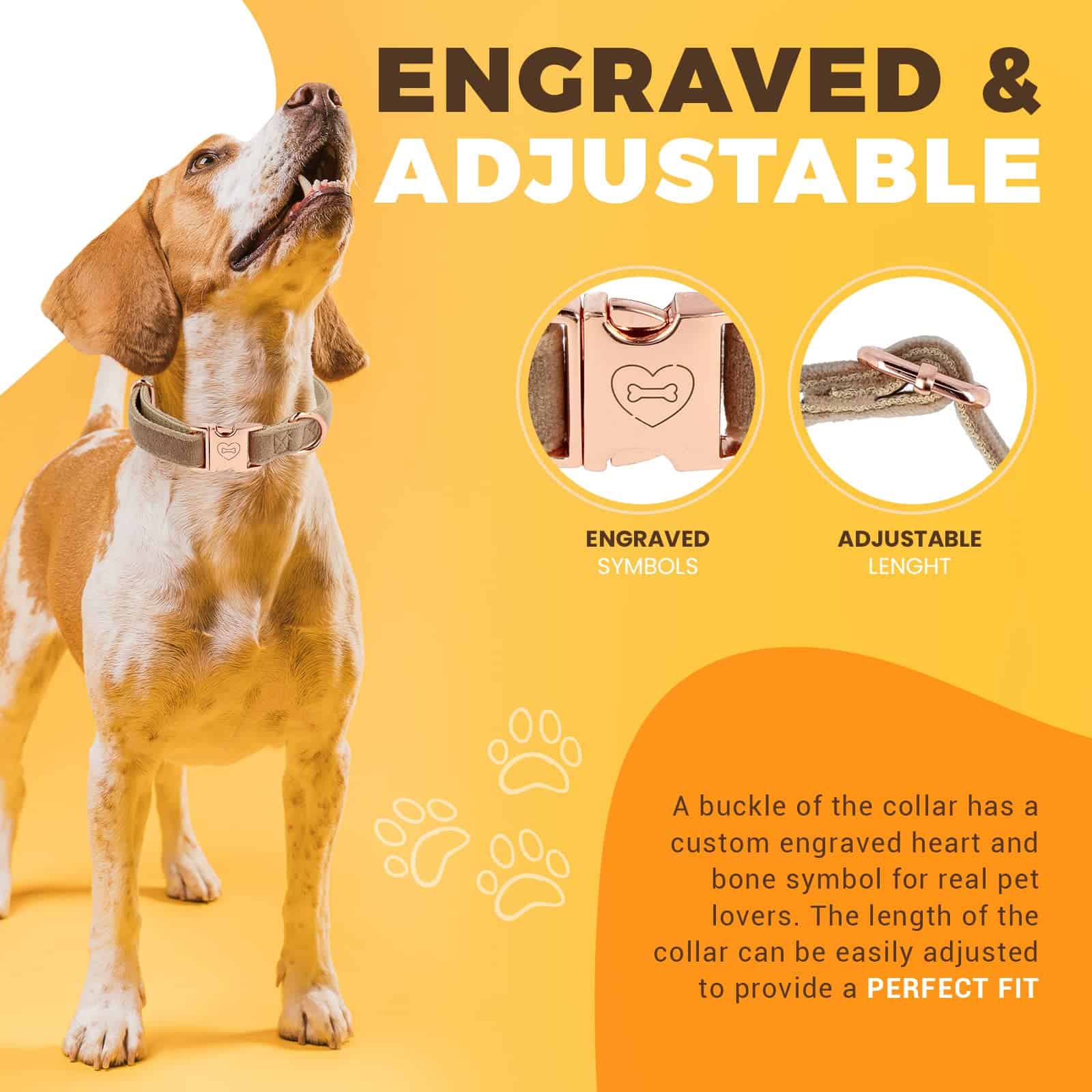 Al crear este elegante conjunto de collar y correa de terciopelo para perros, queríamos asegurarnos de que tu perro se sienta cómodo y luzca genial. Materiales seleccionados a mano para garantizar una calidad de producto de alta gama, color marrón chocolate claro y símbolo Heart-Bone a juego que lo convierte en una elección perfecta para uso diario. Uso: Uso diario, ocasiones especiales: fiestas de cumpleaños, Navidad, bodas. Hecho de: Material externo de terciopelo, material interno de cincha de nylon, hebilla, anillo D, cierres de giro de 360 en metal color oro rosa.
