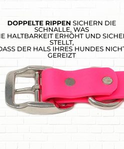Nuestros collares impermeables de alta resistencia están construidos con una hebilla doble de níquel resistente a la oxidación que permite que el collar pase dos veces por la hebilla para un cierre más seguro y un anillo en D para acoplar arneses, correas, placa de identificación y etiqueta de identificación, metal fuerte y duradero que no se oxida cuando se expone a agua dulce o salada. La correa recubierta de vinilo también mantiene este collar impermeable con correa flexible en clima frío (se mantiene suave y flexible a -20 grados F). ¿A tu cachorro le encanta la playa? ¡Este es el collar de perro perfecto para ti! El revestimiento de vinilo es más duradero que el caucho, nylon, silicona, collares delgados o plásticos y nunca absorberá humedad ni suciedad. Estos collares impermeables para perros son resistentes, lo cual es ideal para perros de agua o de caza. ¡El collar repele la suciedad y no atrapa ningún pelo para que se mantenga seco y limpio! ¡Perfecto como collar de caza o collar de entrenamiento para tu amigo peludo! Este collar de perro duradero está hecho de un material sintético que tiene el aspecto y la sensación del cuero pero es prácticamente indestructible, libre de mantenimiento y será el mejor collar de perro que hayas tenido. La correa a prueba de masticar no solo tiene el aspecto y la sensación del cuero sino que también es fácil de limpiar con una esponja húmeda. Este cómodo conjunto de collar y correa para perros es orgullosamente fabricado por Regal Dog Products – una empresa especializada en suministros para perros, accesorios para perros y collares para mascotas. Estamos seguros de que tú y tu mascota adorarán nuestros productos. Porque nunca comprometemos la calidad de nuestro producto, es por eso que nuestros collares para perros están hechos con el mejor material crudo disponible en el mercado.