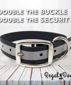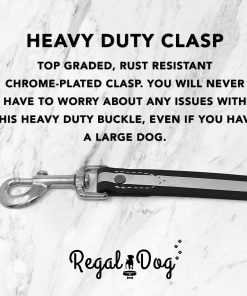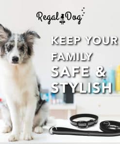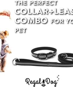 El Conjunto de Collar y Correa Reflectante para Perro de Regal Dog Products es el accesorio perfecto para mantener a tu perro seguro y a la moda. El collar negro reflectante está diseñado para garantizar la seguridad de tu mascota y la tuya durante paseos nocturnos. La tira altamente reflectante brinda visibilidad adicional a los conductores, mientras que el anillo central innovador permite que tu perro alivie la presión en caso de enganche. El collar está hecho de material vinílico resistente al agua que no se empapa, manteniendo a tu perro limpio y fresco. Además, la hebilla doble resistente y los metales sólidos garantizan la durabilidad del collar. Los collares de Regal Dog Products son una combinación perfecta de estilo y funcionalidad, con un diseño que imita la apariencia y la sensación del cuero real, pero sin la crueldad animal. ¡Mantén a tu perro seguro, cómodo y con estilo con este collar y correa reflectante de Regal Dog Products!