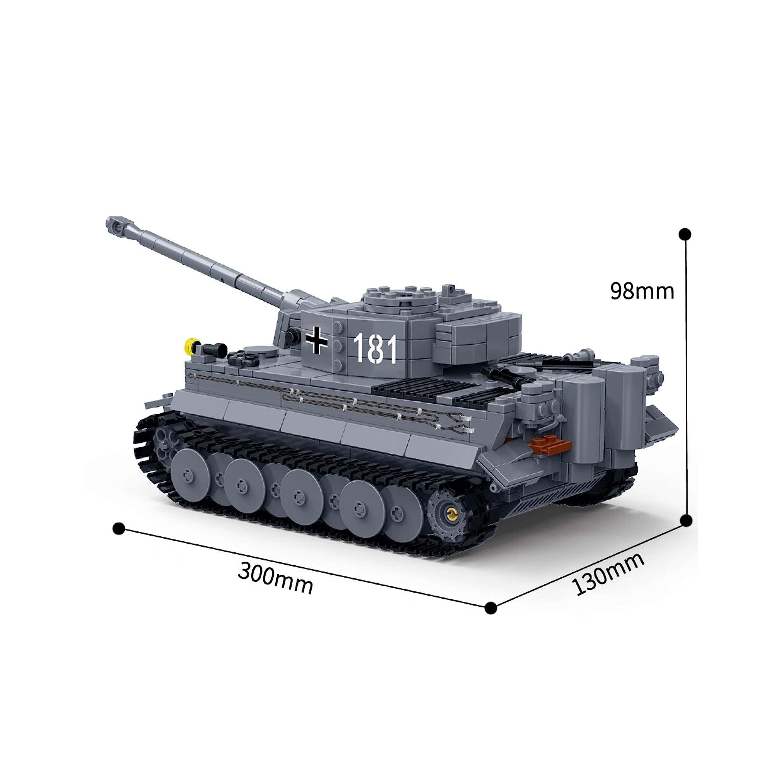 Conjunto de Bloques de Construcción de Tanque Tigre Rey Alemán Juguete de Juguetes de Infrantería de Tanques de la Segunda Guerra Mundial. Set de Juguete De Armas Modelo De Tanque Tigre Alemán De Tángara De La Segunda Guerra Mundial. Tanque Aleman que contiene 1010 piezas. Este es la segunda versión del tanque Tigre. Fue reforzado para pesar 75 toneladas. Alargaron el cañón con mayor velocidad, ahora el cañón KWK 88 mm. Podía penetrar un blindaje de 5 pulgadas desde una milla de distancia. La torreta podía girar 360 grados en 19 segundos y el tanque podía viajar por carreteras a 25mph. El producto se entrega con instrucciones detalladas impresas en papel. Los bloques de construcción de Jim son compatibles con Lego, Cobi, Wange, Sembo y todas las principales marcas de bloques de construcción.
