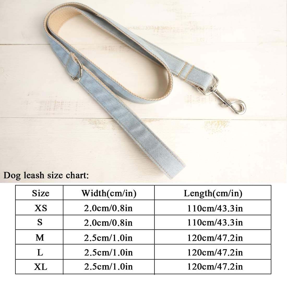 Descripción Material: tela de nylon + cinta Color: Rojo cowboy, Amarillo cowboy, Marrón cowboy, Blanco cowboy, Color cowboy claro, Margarita negra, etnia azul cielo, Verde lago Qingfeng, Cuadros azul claro Tamaño de la correa: —-XS:110cm 2.0cm/43.3in 0.8in; —-S:110cm 2.0cm/43.3in 0.8in; —-M:120cm 2.5cm/47.2in 1in; —-L:120cm 2.5cm/47.2in 1in; —-XL:120cm 2.5cm/47.2in 1in; Tamaño del collar —-XS: Ancho: 2.0cm/0.8in, Cuello: 23-30cm/9.0-11.8in —-S: Ancho: 2.0cm/0.8in, Cuello: 31-41cm/12.2-16.1in —-M: Ancho: 2.5cm/1.0in, Cuello: 42-48cm/16.5-18.9in —-L: Ancho: 2.5cm/1.0in, Cuello 49-55cm/19.3-21.6in —-XL: Ancho: 2.5cm/1.0in, Cuello: 56-62cm/22.0-24.4in Características: —Utiliza anillos en D de acero inoxidable. para que puedas estar seguro de que tu perro está seguro en la correa de tu mascota. —Hecho con hebilla de metal PLATEADO ligero y de calidad. Ideal para perros pequeños y grandes, ya que pesa aproximadamente lo mismo que otras hebillas de plástico. —Está hecho de telas de diseño lavables, así que no te preocupes, cuando tu mascota está nadando y jugando en el agua. —Es un material duradero, utilizamos una resistente tela de nylon que puede soportar más de 1000 libras de presión, pero para proteger a tu mascota, esperamos que eso nunca suceda. Contenido del paquete: 1 x Correa para perro 1 x Collar para perro