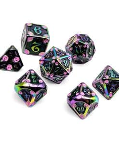 Lleva tu juego al siguiente nivel con nuestro conjunto de dados de metal poliédricos. Diseñados para tiradas suaves y fácil legibilidad, estos dados añaden emoción y estilo a cada juego. Con sus colores vibrantes y diseño elegante, seguramente impresionarán a tus compañeros jugadores y mejorarán tu experiencia de juego en general.