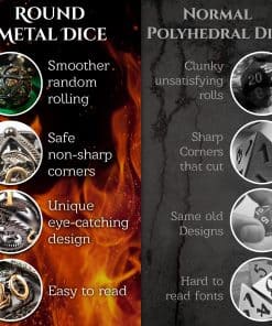 Presentando la Colección de Orbes Huecos El lanzamiento de dados más único de SOAR FORGE hasta ahora, la Colección de Orbes Huecos está diseñada con un balance preciso, rodado suave y un fuente llamativa. Desde la invención de la rueda, la gente ha sabido que las cosas redondas ruedan, bueno. los dados redondos también lo hacen. Finalmente, no más de los mismos dados de siempre. Descubre nuevos y únicos Orbes Huecos y cambia la forma en que lanzas para siempre y lleva tu juego a un nivel superior con estos increíbles dados de orbe hueco. Obtén una ventaja para potenciar tu juego para que puedas vencer cruelmente a tus enemigos y mejorar tus probabilidades! Hechos con dimensiones más grandes que el promedio utilizando metal duradero pero ligero, estos dados de Dnd se sienten increíbles y funcionan de manera excelente en cualquier situación de campaña. ¡Haz de tu próxima noche de juegos una victoria abrumadora! Elige entre dos hermosos diseños de Orbes Huecos: Dragón Antiguo y Bosques Mágicos Celtas. Con una selección fresca de colores para elegir, seguramente habrá un conjunto con afinidad para cada jugador. No encontrarás este conjunto de dados extremadamente único y llamativo en ningún otro lugar. Pero ten cuidado: un conjunto tan impresionante de dados seguramente hará que alguien en tu grupo de DND desarrolle un severo caso de envidia por los dados. Son el tesoro perfecto para coleccionistas, DM’s, goblins de los dados o cualquier aventurero de juegos ávido.
