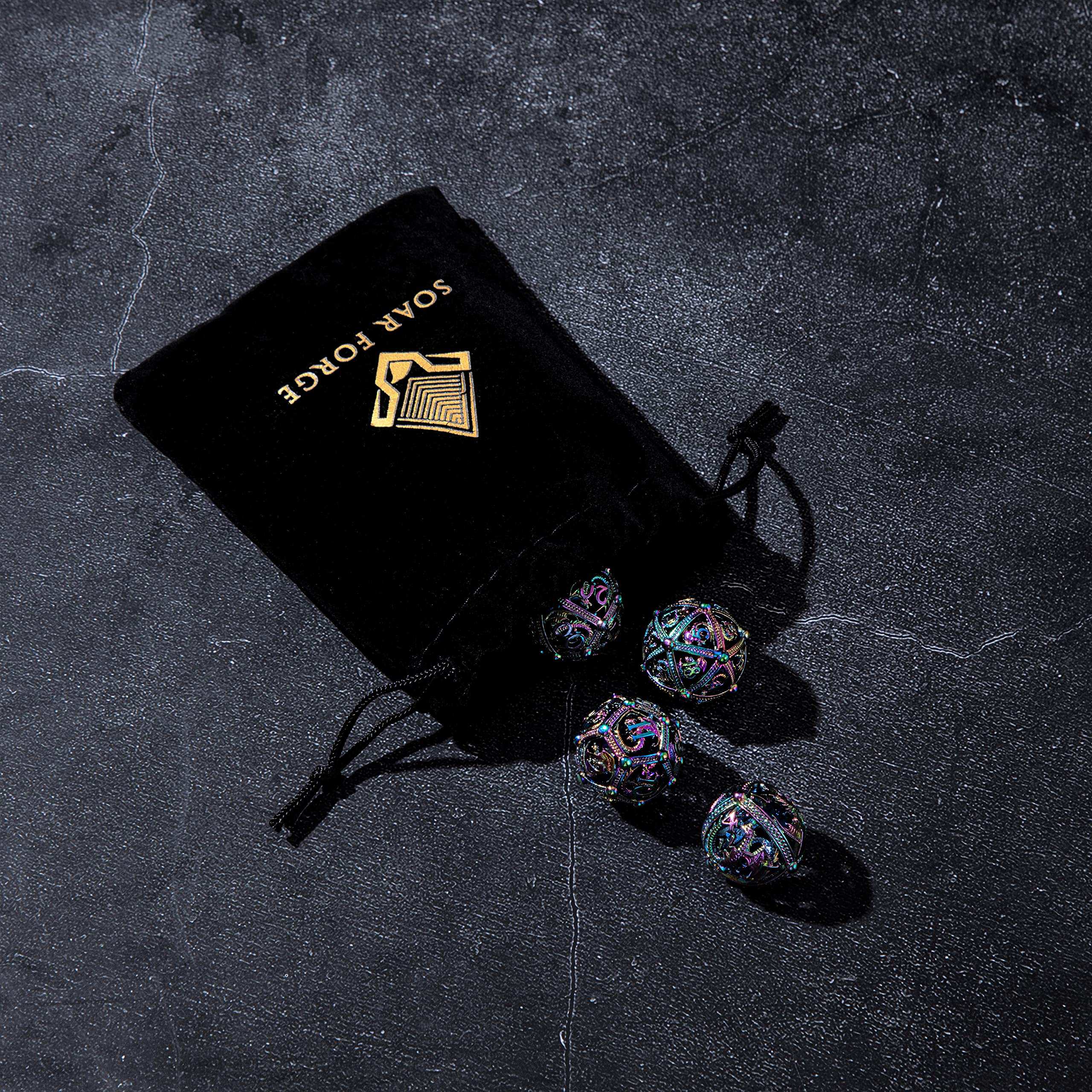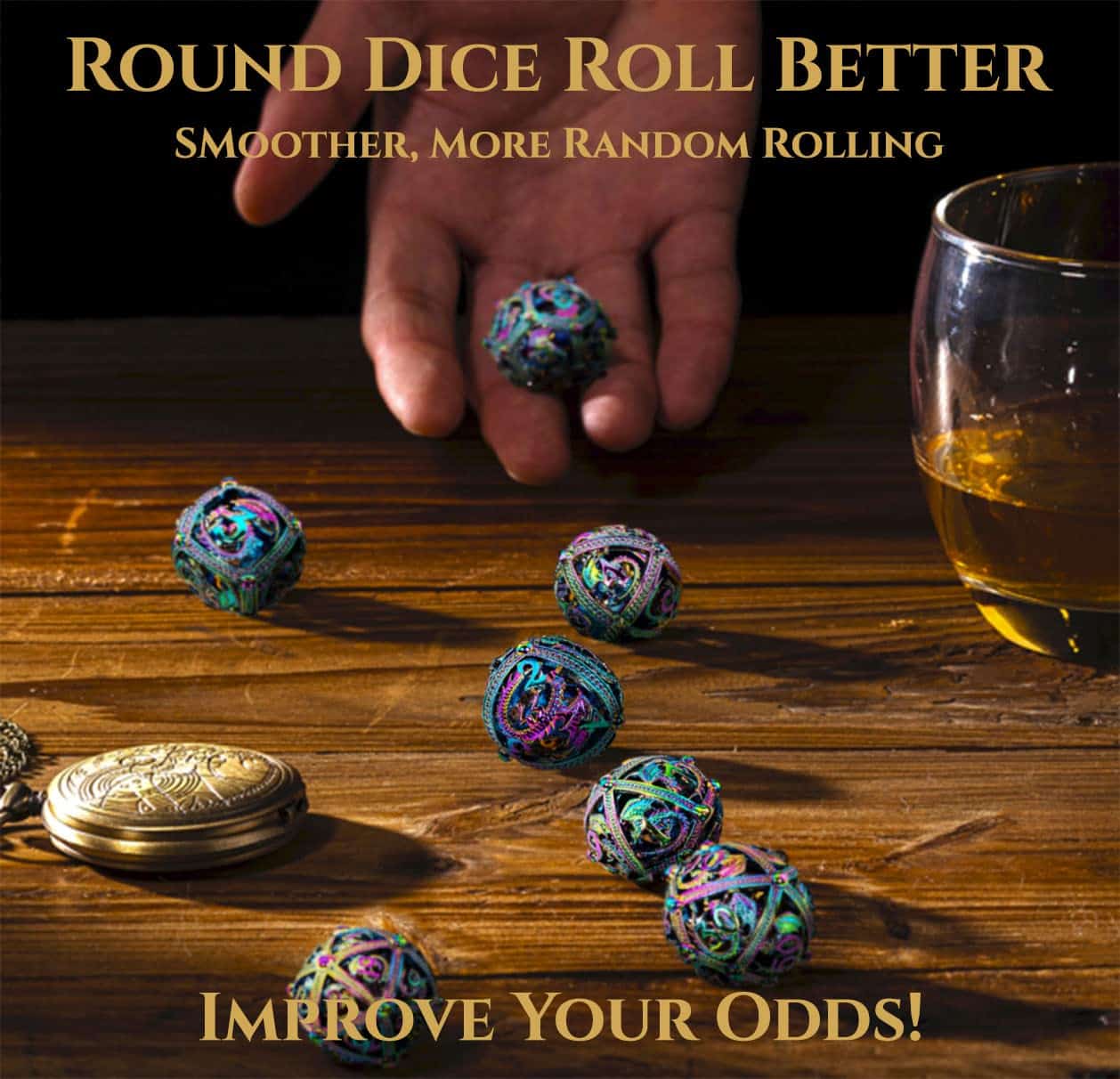 Presentando la Colección de Esferas Huecas La más única colección de dados lanzada por SOAR FORGE hasta ahora, la Colección de Esferas Huecas está diseñada con un balance preciso, rodaje suave esférico y una fuente llamativa. Desde la invención de la rueda, las personas han sabido que las cosas redondas ruedan bien. los dados redondos también lo hacen. ¡Por fin, no más de los mismos dados de siempre! Descubre las nuevas y únicas Esferas Huecas y cambia la forma en que lanzas para siempre y lleva tus juegos a un nuevo nivel con estos increíbles dados de esfera hueca. Obtén una ventaja para potenciar tu juego y poder derrotar sin piedad a tus enemigos y mejorar tus probabilidades! Hechos con dimensiones más grandes de lo habitual utilizando metal duradero pero ligero, estos dados de D&D se sienten increíbles y funcionan de manera excelente en cualquier situación de campaña. ¡Haz que tu próxima noche de juegos sea una victoria abrumadora! Elige entre dos hermosos diseños de Esferas Huecas: Dragón Antiguo y Bosques Mágicos Celtas. Con una selección genial de colores para elegir, seguramente habrá un conjunto con afinidad para cada jugador. No encontrarás este conjunto de dados extremadamente único y llamativo en ningún otro lugar. Pero ten cuidado – un conjunto de dados tan impresionante seguramente hará que algunos en tu grupo de DND desarrollen un severo caso de envidia de dados. Son el tesoro perfecto para coleccionistas, DM, jugadores de dados o cualquier aventurero de juegos ávido.