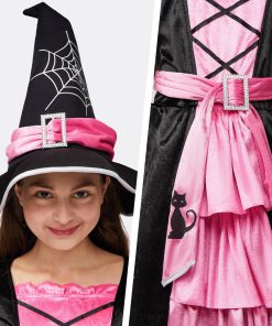 Conjunto de Disfraz de Bruja Rosa de Cuento de Hadas Spooktacular Creations con Escoba para NiñasnConjunto de Disfraz de Bruja de Cuento de Hadas de Lujo para Niñas con Escoba. Incluye Sombrero de Bruja a Juego, Vestido con Falda Completa y Una Escoba. La escoba está equipada con cinco colores de cintas decorativas y puedes combinarla con tu atuendo según tus preferencias personales.nDisfraz de Bruja Lindo para Niñas Pequeñas. Súper Duradero. Mayor Calidad. 100% Poliéster.nPaquete de Gran Valor para Juegos de Rol. Perfecto para Fiestas de Disfraces de Halloween, Fiestas Temáticas de Brujas de Cuento de Hadas, Disfraces de Brujas para Niños, Bruja Linda, Disfraces de Brujas para Niñas, Disfraces de Brujas Buenas para Niñas, Disfraces de Halloween, Juegos de Rol de Brujas de Cuento de Hadas, Actividad, Juegos Diarios y Más!.nSEGURIDAD DEL NIÑO: No tóxico. Cumple con el Estándar de Juguetes de EE.UU. Aprobado en Pruebas de Seguridad.nTamaño: Niño Pequeño (3 – 4 años), Pequeño (5 – 7 años), Mediano (8 – 10 años), Grande (10 – 12 años)