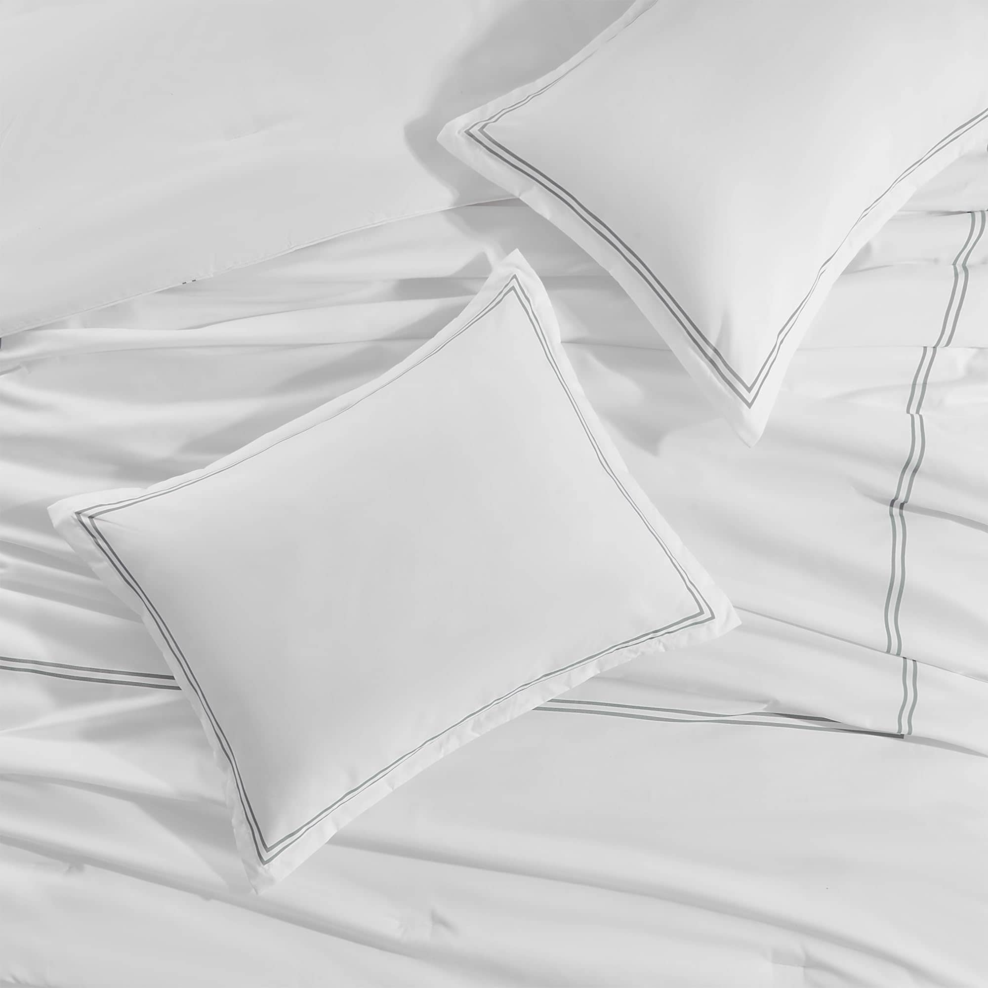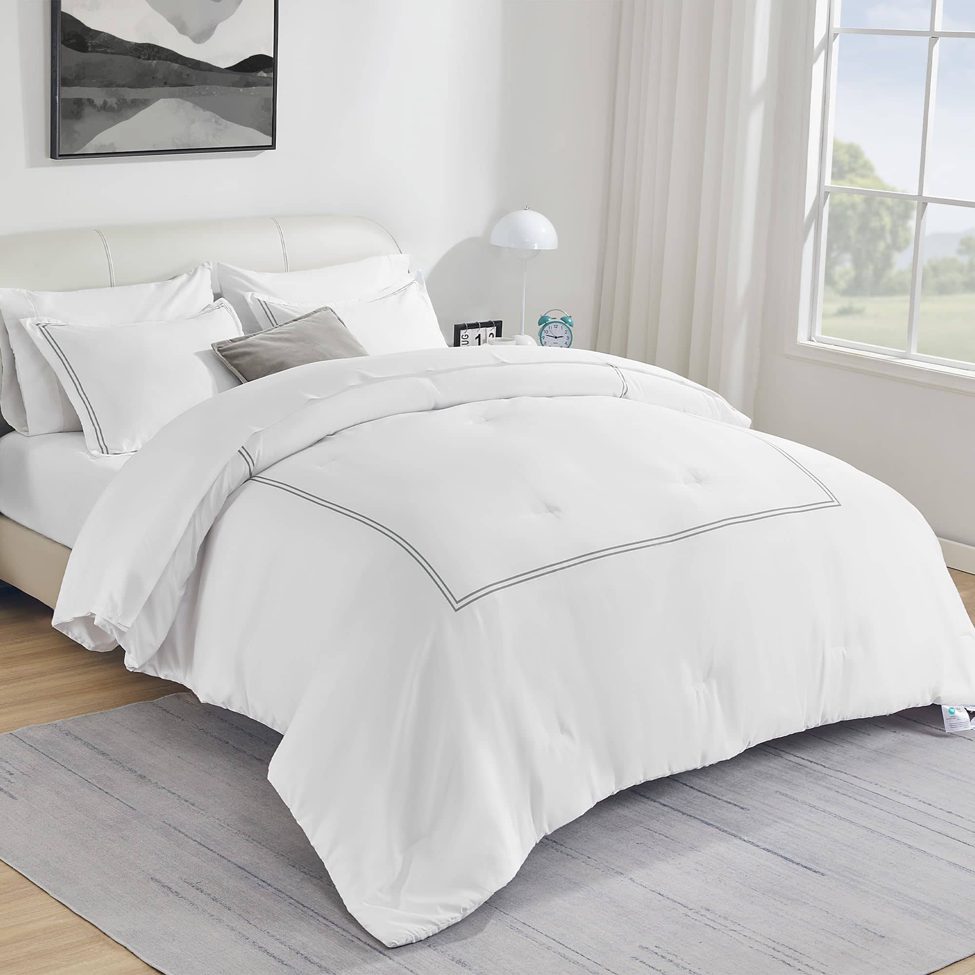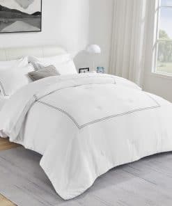1. REGULACIÓN DE TEMPERATURA – La tela tiene un grosor de 120 g/m² de microfibra de doble cepillado y está rellena de fibra refrigerante INVISTA. Es más fresca y transpirable. Puede mantener su cama a una temperatura acogedora (32 – 34 ). Lo mantendrá caliente en invierno y fresco en verano. 2. SUAVE Y ACOLCHADO – Relleno con microfibra espiral premium resistente, proporcionando excelente comodidad y suavidad. Mezclado con fibra INVISTA, extra brillanteza acogedora y sensación de enfriamiento. Este lujoso edredón alternativo de plumas es amigable para los alérgicos a las plumas de ganso y ropa de cama de plumas. Ligero, silencioso, sin rasgaduras ni olores horribles. 3. Diseño Exquisito – Este juego de edredón presenta un diseño de estilo hotelero festivo, permitiéndole disfrutar la sensación de lujo de un hotel en la comodidad de su hogar, dando a su dormitorio un aspecto completamente nuevo. Además, la costura de alta calidad del edredón asegura una distribución uniforme del relleno, evitando cualquier desplazamiento o agrupamiento. Se adapta perfectamente a las curvas de su cuerpo, ya sea que duerma de lado, boca arriba o boca abajo. 4. DURADERO Y ESTABLE – Este juego de edredón está hecho con microfibra de alta calidad, garantizando su durabilidad y longevidad. No solo ofrece una sensación suave y cómoda, sino que también es fácil de limpiar y mantener. Puede mantener el edredón fresco y limpio sin esfuerzo. Este conjunto de ropa de cama le brinda una experiencia de sueño cómoda. 5. PROMESA DE SATISFACCIÓN – SLEEP ZONE tiene más de 40 años de experiencia en el diseño y fabricación de ropa de cama de alta calidad. Nuestros productos están certificados según el estándar Oeko-Tex 100 para estar libres de sustancias químicas dañinas. Puede comprar con confianza bajo nuestra excelente calidad de producto y servicio al cliente. Si tiene alguna pregunta o problema, no dude en contactarnos, le responderemos en un plazo de 24 horas.