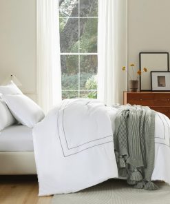 Ultimate Softness: The shell of this comforter is made from 100% high-density, long-staple cotton, presenting an ultimate silky and skin-friendly feel. The inner filling features carefully selected and processed high-quality polyester, creating a sensation akin to lying on clouds. Soft, breathable, and fluffy. Lightweight yet delivers outstanding warmth. Versatile for All Seasons: Crafted with premium materials, tightly stitched for durability, this comforter ensures year-round use. Whether it’s the chilly winter or the warm summer, it guarantees an ideal sleeping experience. It seamlessly integrates into various spaces, be it the master room, guest room, indoors, camping, or even in your RV. Elegant and Luxurious: White comforter with gray satin stitch embroidery designs along its edges, Infused with a unique sense of fashion and creativity, this comforter is not merely bedding; it is an artistic piece for your space. Delicate fabric, exquisite stitching craftsmanship. It brings an unprecedented aesthetic appeal to your space, creating a discreetly noble luxury atmosphere. Ultimate Comfort: You can feel the comforter’s remarkable close-fitting experience, as if it were tailor-made for you. Perfect weight and warmth allow you to immerse yourself in comfort. You’ll be moved by the soft touch and warm embrace, as if nestled in an intimate hug. 3-Piece Queen Comforter Set Includes: 1 Comforter: 90″ x 90″; 2 Pillow shams: 20″ x 26″. Easy to Clean: Machine Wash separately in cold water, tumble dry low, do not bleach. If you have pets, a washable and durable comforter is a good choice. COMFORTER CERTIFICATION: The comforter is certified by STANDARD 100 by OEKO-TEX to ensure that the comforter meets high-level safety and health standards.