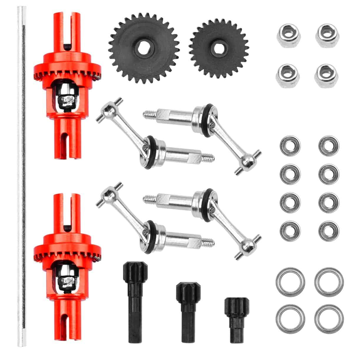 El conjunto de eje de transmisión central y diferencial es compatible con el coche RC Wltoys 1/28 K969 K979 K989 K999 P929 P939. El juego de diferencial K969 y eje de transmisión CVD están hechos de materiales metálicos, los engranajes están hechos de acero, flexibles y resistentes. Parte de actualización, el juego de diferencial 1/28 es más duradero que el de plástico; reemplaza directamente el viejo o roto diferencial. Fácil y conveniente de instalar y quitar, una gran pieza de repuesto para tu coche RC, también puede ayudar a mejorar su rendimiento. Gran resistencia, fácil de instalar y actualizar.