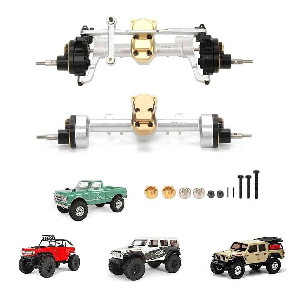 Compatible con: Axial SCX24 C10 AXI00001, Wrangler AXI00002, Gladiator AXI00005, Bronco AXI00006, Deadbolt AXI90081; Sustitución de las partes de fábrica SCX2483, SCX2484, carcasas de eje del portal delantero y trasero con engranajes; Aumento de la altura al suelo, pasar fácilmente por obstáculos y mejorar en gran medida el rendimiento de escalada; Aumento de peso del chasis de los crawlers, mejora la estabilidad de los crawlers; RCAWD cuenta con un equipo de servicio profesional, contáctenos cuando necesite ayuda.