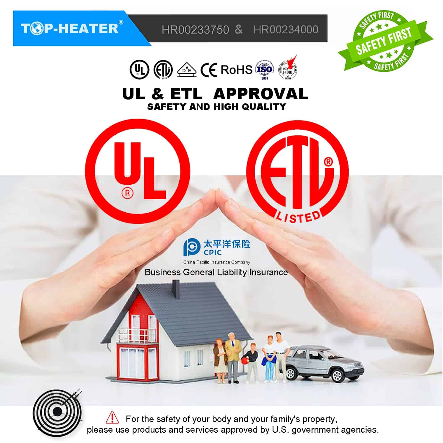 4. FUERZA UL listado. Nuestros elementos de quemador de estufa eléctrica han sido aprobados por UL. En TOP-HEATER tenemos más de 30 años de experiencia en la producción de elementos calefactores eléctricos. Podemos fabricar varios tipos de productos basados en diferentes diseños de clientes con mejor calidad y mayor seguridad.