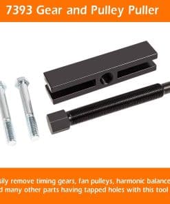 El extractor grande de engranajes y poleas 522 es compatible con Ford D80L-522-A y 303-D025, se extiende de 2 pulgadas a 7-3/4 pulgadas; el bloque mide 8-1/4 pulgadas de ancho. El tornillo de fuerza es de 3/4 pulgada-16 x 11-5/8 pulgadas de largo. Esta herramienta podría adaptarse a cualquier tornillo de tapa de hasta 1/2 pulgada de diámetro y es adecuada para muchos tipos de engranajes y poleas. El extractor de engranajes y poleas 7393 presenta una extensión de 1-1/2 pulgadas a 4-1/4 pulgadas. El bloque del extractor mide 4-7/8 pulgadas de ancho. Tornillo central de 5-1/2 pulgadas de largo; incluye 2 tornillos de cabeza hexagonal de 3/8-16 x 3 pulgadas. El juego de protectores de eje 8056 está diseñado para proteger los centros de los ejes de la distorsión cuando se aplican presiones extremas con extractores Grip-O-Matic o push-puller. Los localizadores macho y hembra ayudarán a mantener el protector de eje en su lugar durante el uso. Hecho de acero de primera calidad con acabado de óxido negro en la superficie, las herramientas están endurecidas y son extremadamente duraderas y resistentes, con resistencia a la corrosión y al óxido, muy universales para que las pueda usar como necesite. La mejor calidad al mejor precio, ¡compre este conjunto de herramientas imprescindibles ahora!