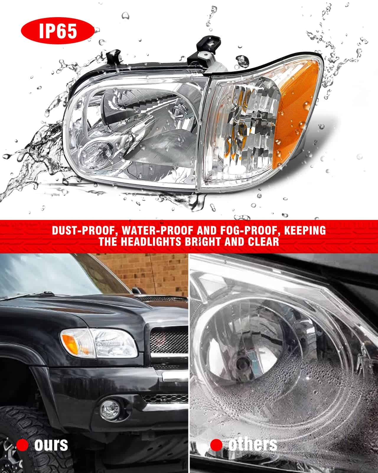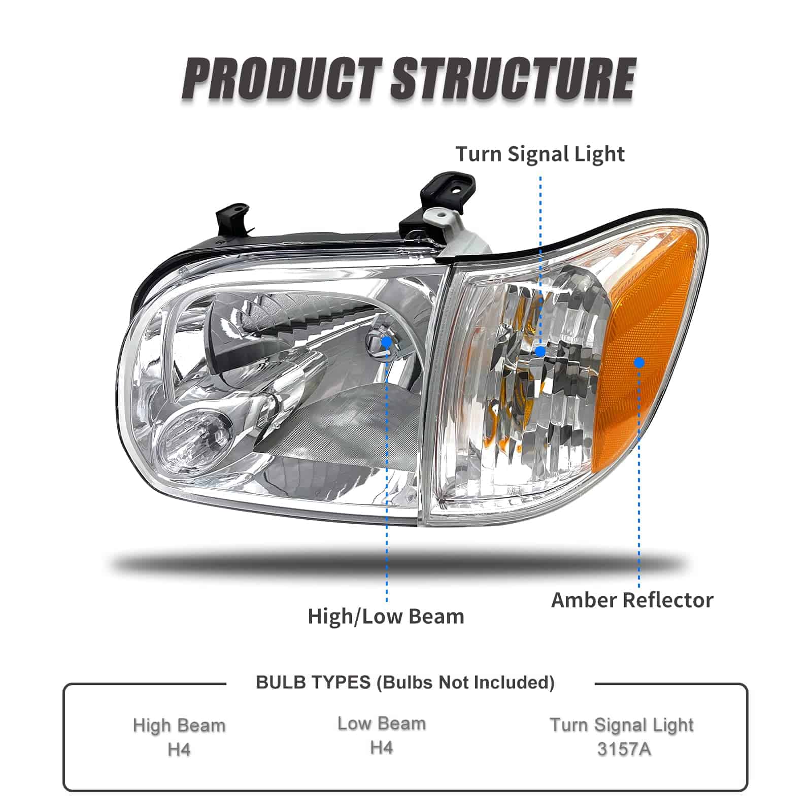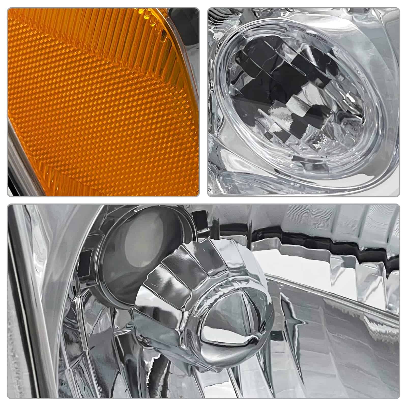 ¡Es hora de cambiar tus faros! ¿Por qué gastar tanto dinero en el taller de mantenimiento de autos? Solo necesitas un par de faros nuevos y tu auto lucirá como nuevo nuevamente. DISEÑADO Compatible con Toyota Tundra 2005-2006 / Sequoia 2005-2007 Número de pieza OEM equivalente: 81150-0C031 / 81110-0C031 Partslink: TO2502158 / TO2503158 Condición: Nuevo Color: CARCASA CROMADA REFLECTOR ÁMBAR Paquete incluido: Lado del conductor y del pasajero Certificaciones: DOT, SAE Atención Este producto no incluye bombillas Modelo de bombilla: Luz de cruce / Carretera Tipo de bombilla: H4 Luz de marcador lateral: W5W