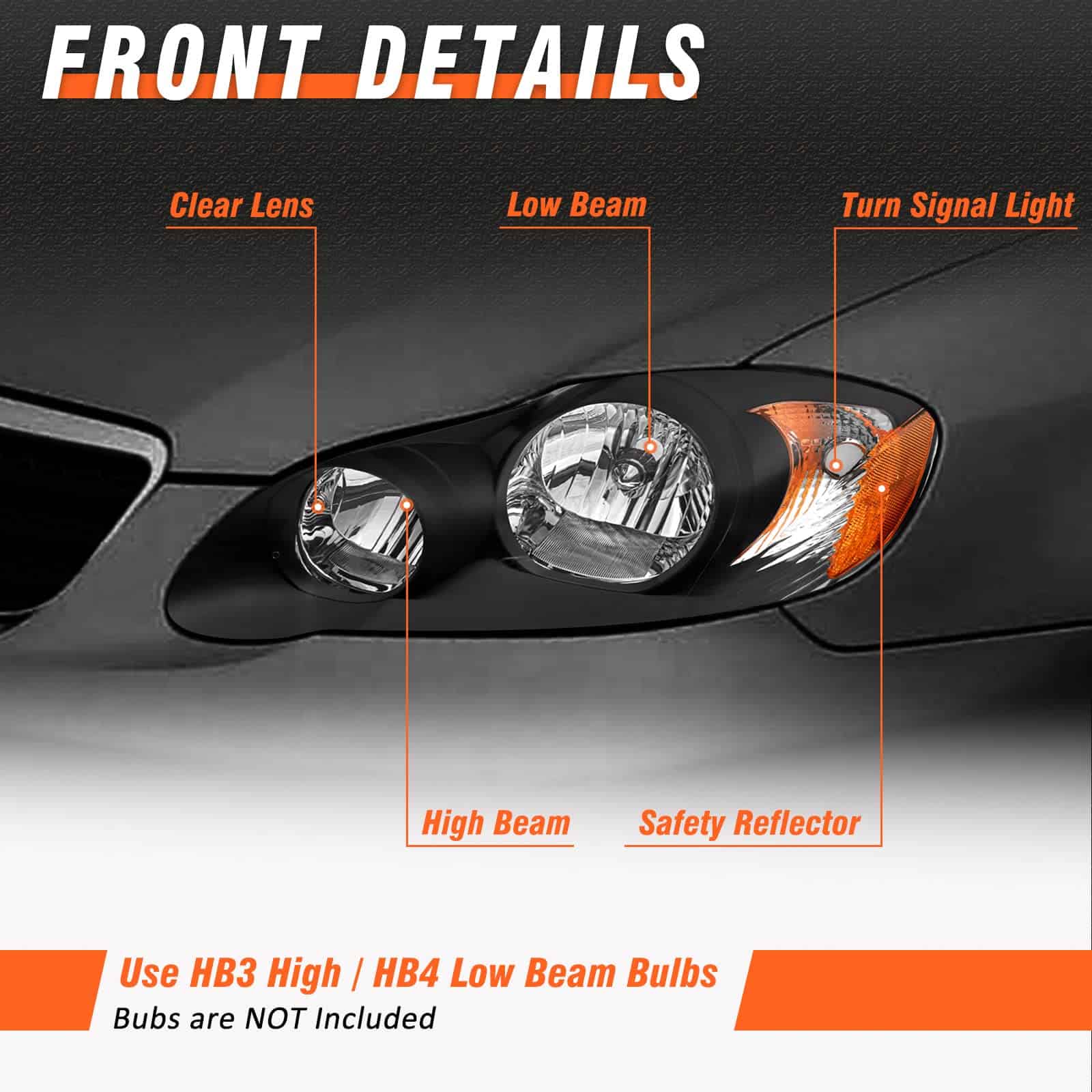 1. Compatibilidad con vehículos: Conjunto de faros compatible con Toyota Corolla 2003 2004 2005 2006 2007 2008.