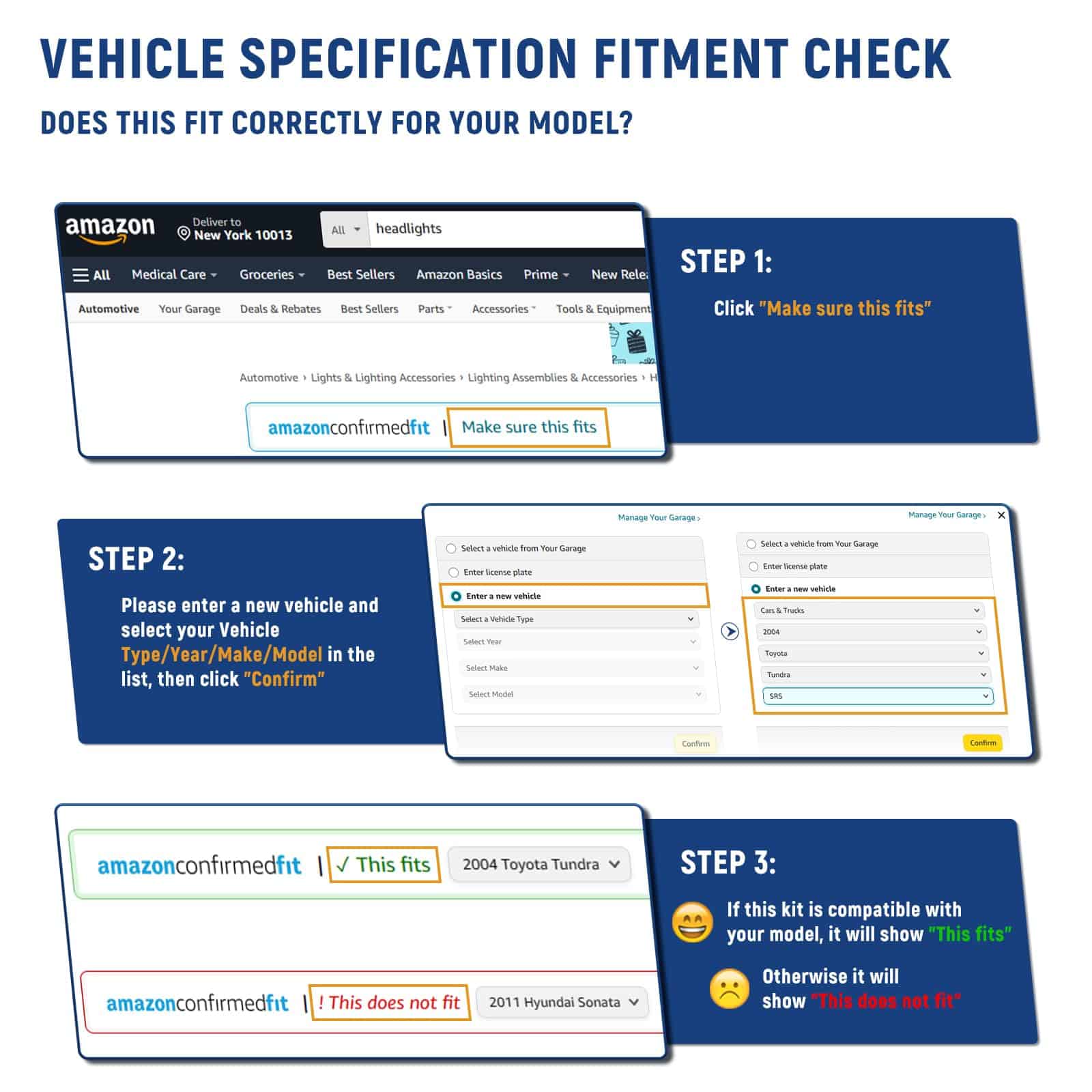 Procedimiento de Instalación: Se recomienda instalar profesionalmente A. Consulta un manual del vehículo para averiguar qué componente se debe quitar para acceder al conjunto de faros delanteros. B. Deshacer los tornillos, clips o muelles retenedores que sostienen el faro en su lugar. C. Desconectar el cableado del conjunto. Después de retirar el cableado, ahora puedes desprender el faro del vehículo para reemplazarlo por uno nuevo. D. Fija el nuevo faro en su lugar y asegúrate de que los tornillos, clips o muelles retenedores utilizados estén sellados. E. Vuelve a conectar el cableado que fue desconectado del conjunto. F. Prueba el nuevo conjunto.