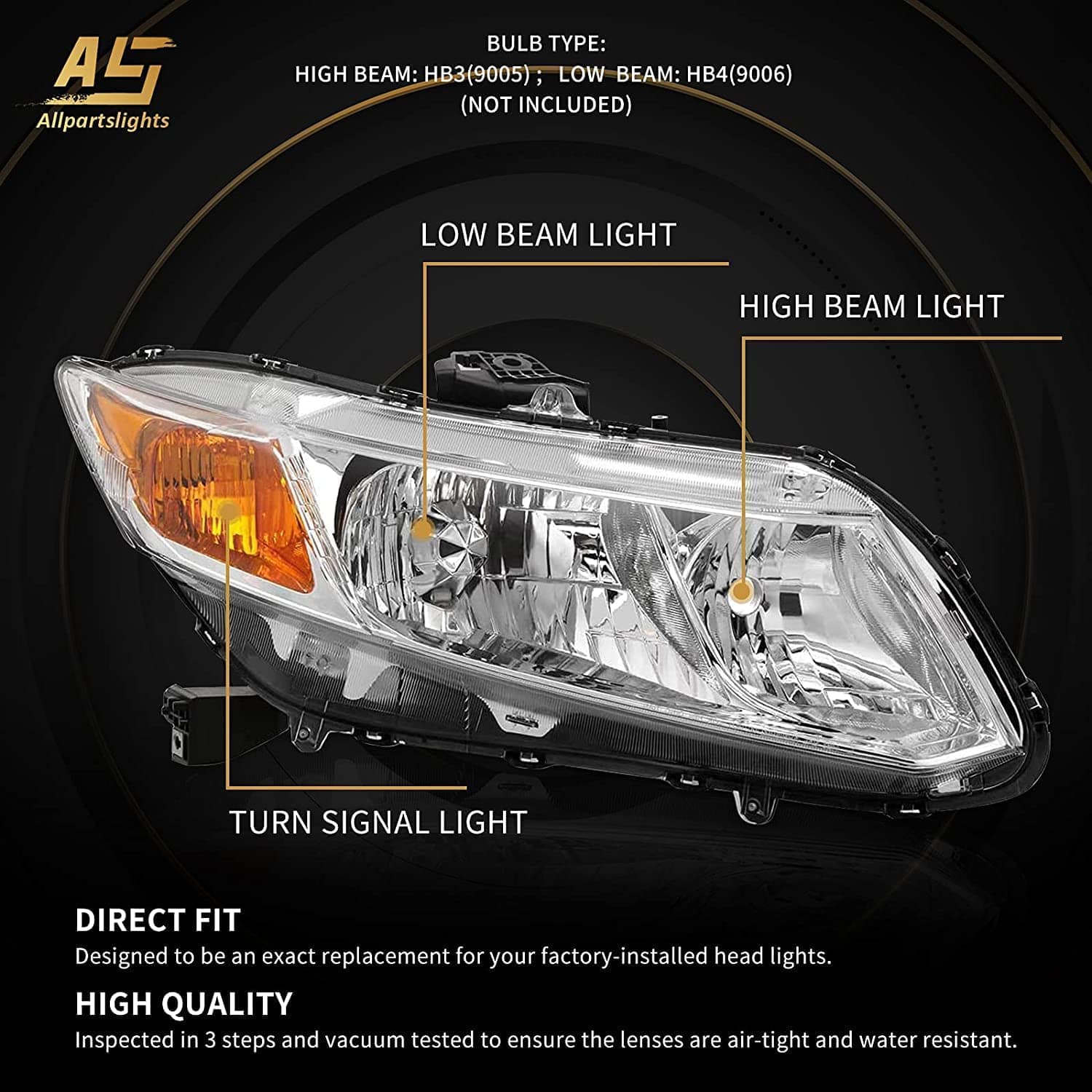 Conjunto de Faros Delanteros de Reemplazo para Honda Civic 2012-2015 4 Puertas Sedán / 2012-2013 Honda Civic 2 Puertas Coupé