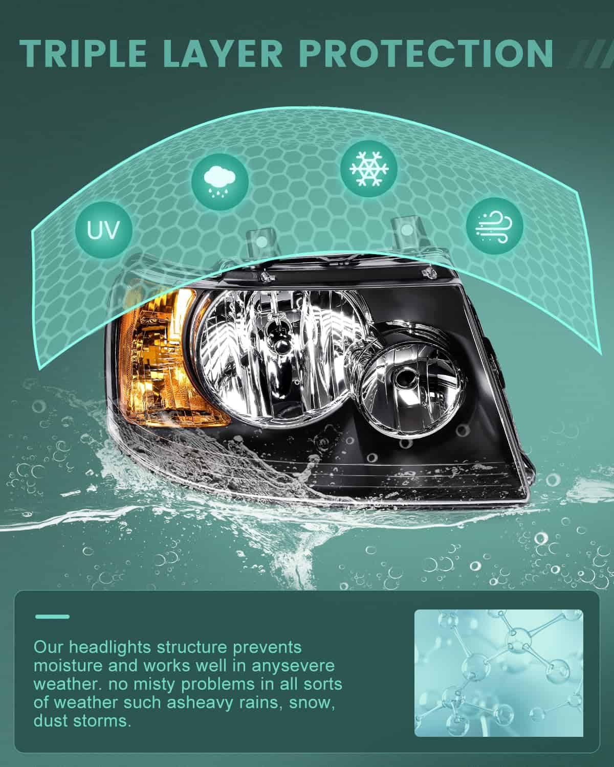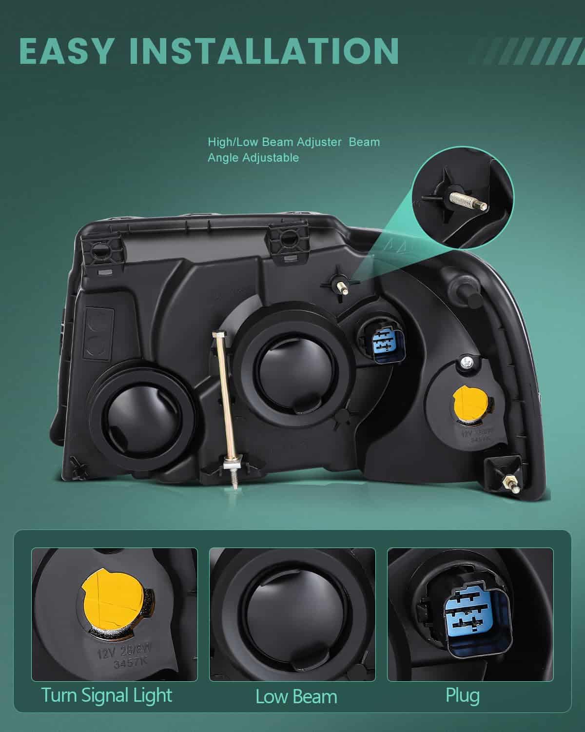 Conjunto de faros delanteros para Ford Expedition de 2003 a 2006, lado del conductor y lado del pasajero. Este conjunto de faros está diseñado para mejorar la iluminación y visibilidad durante la conducción nocturna. Fabricado con materiales duraderos como carcasa de plástico ABS rígido y lente de policarbonato, el diseño sellado mantiene alejada el agua para garantizar un rendimiento óptimo en todas las condiciones climáticas. La instalación es sencilla y no requiere modificaciones, lo que permite una actualización rápida y fácil de los faros existentes. Además, este producto cumple con los estrictos estándares de seguridad DOT y SAE, garantizando un rendimiento fiable y seguro. Asegúrate de que este conjunto de faros sea compatible con tu Ford Expedition antes de realizar la compra.