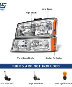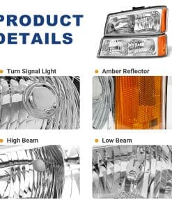 1. Conjunto de Faros Delanteros de Ajuste OEM Directo para Chevrolet Silverado / Avalanche 1500 / 2500 / 3500 2003-2006. Luz Alta/Baja: HB3/HB4, Luz de Señal: 3457A Bombillas no incluidas. No se Adapta a los Modelos con Revestimiento de Carrocería.