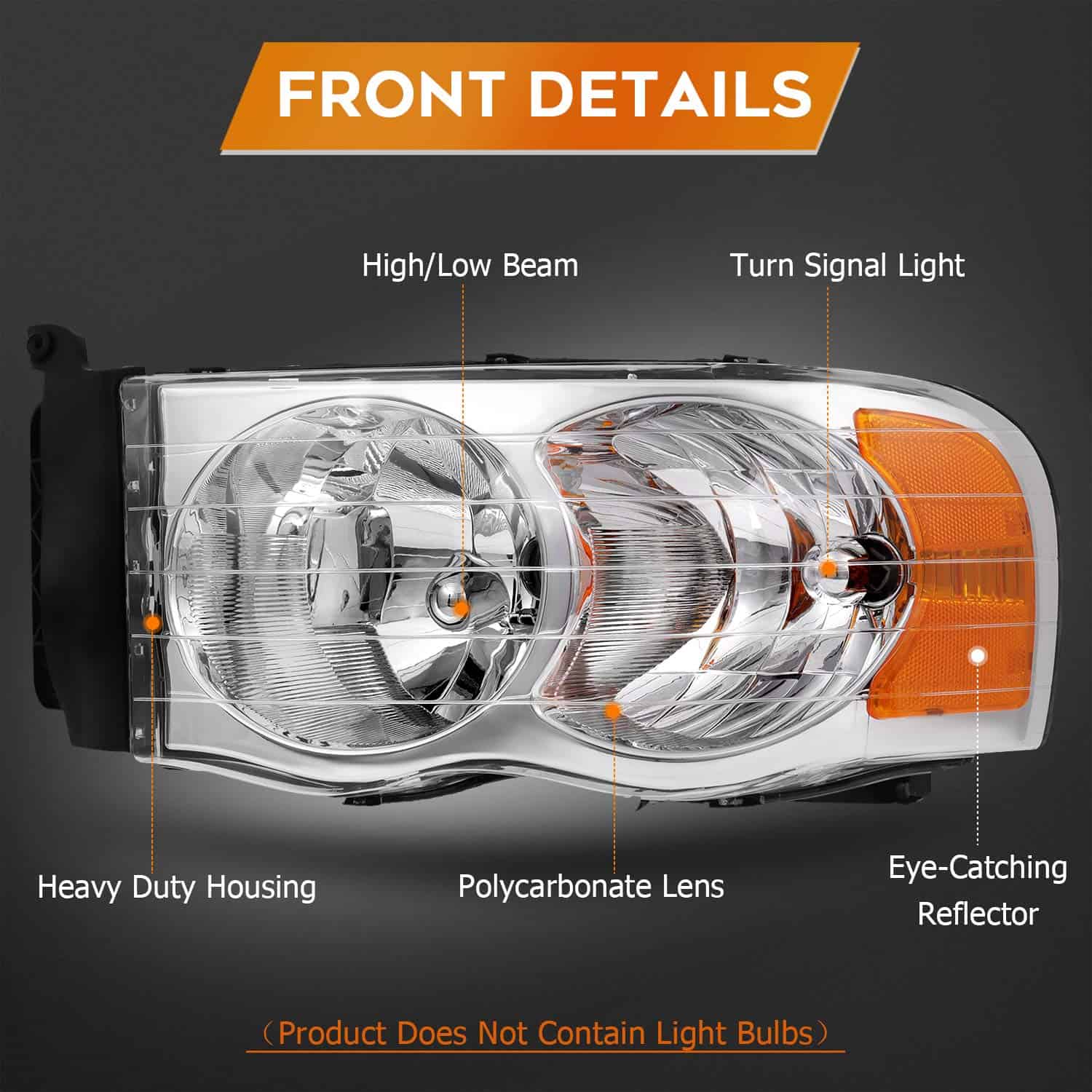 1. Encaje de faros delanteros – Conjunto de faros delanteros para Dodge Ram 1500 2002-2005, Ram 2500 2003-2005, Ram 3500 2003-2005. Verifique la información de ajuste antes de comprar para reducir devoluciones innecesarias y pérdidas.