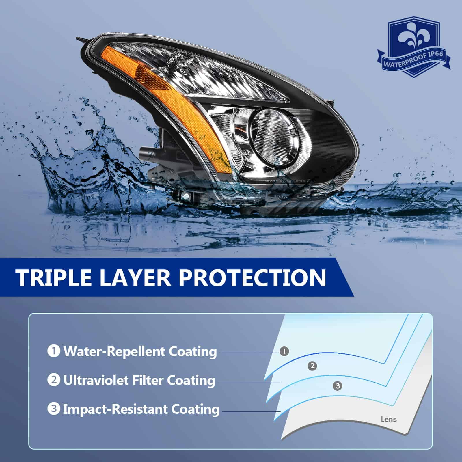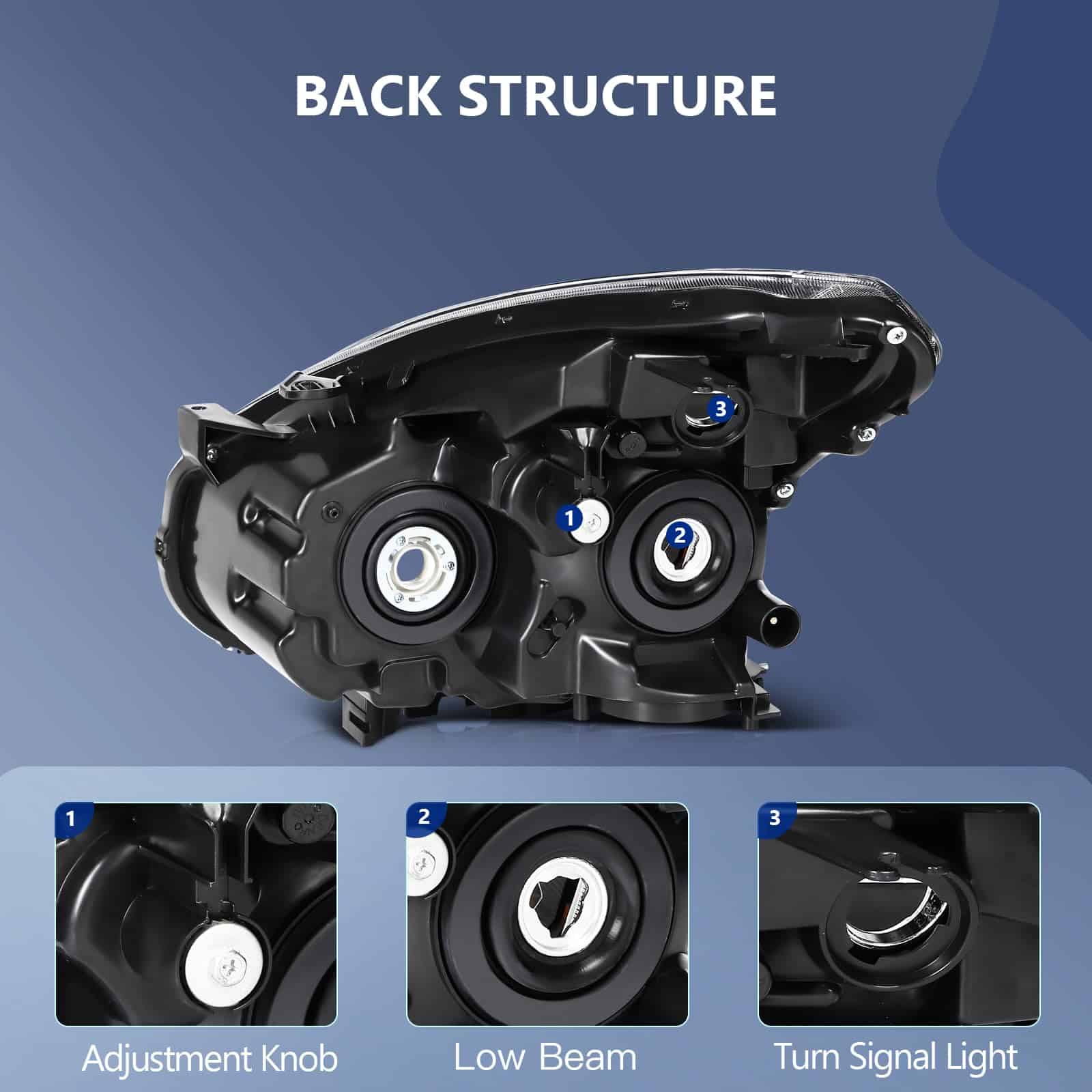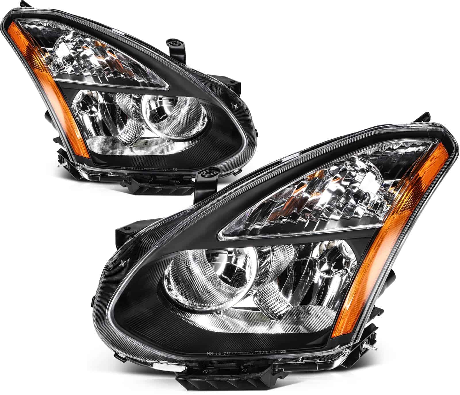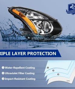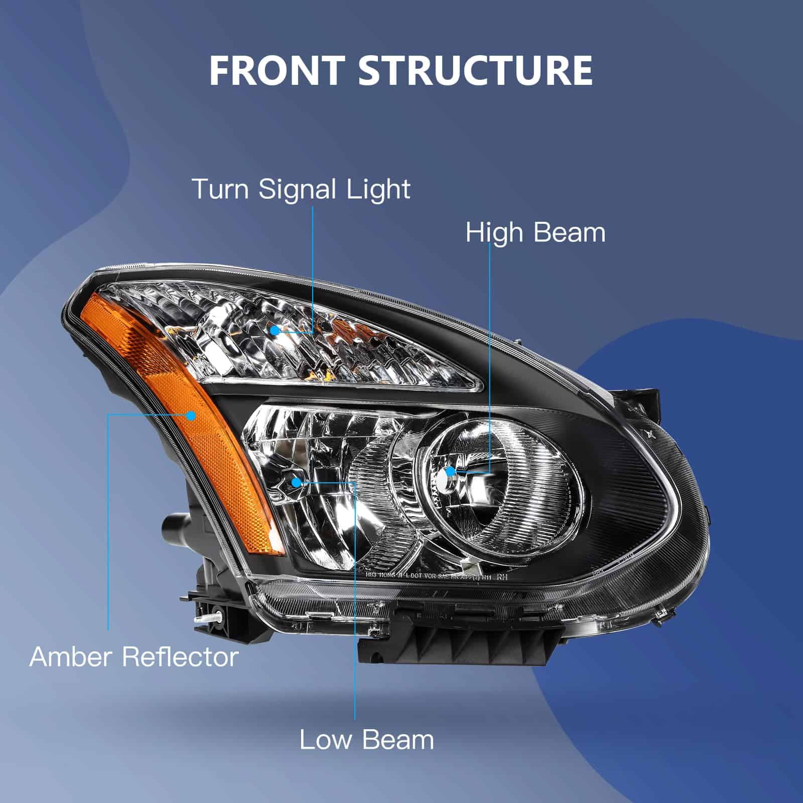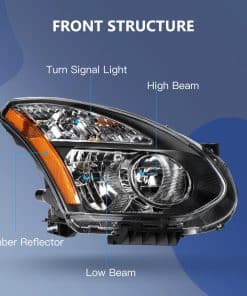 Conjunto de faros ECCPP para Nissan Rogue 2008-2013 para Nissan Rogue Select 2014-2015. Este conjunto de faros está diseñado para ofrecer una iluminación adecuada que cumple con los requisitos de seguridad para su Nissan Rogue. Los faros mejoran la seguridad de la conducción nocturna al proporcionar una iluminación clara y de largo alcance. La carcasa negra con reflector ámbar le dará a su automóvil un aspecto renovado y moderno. El capó de vidrio de los faros está fabricado con materiales especiales que ofrecen alta dureza, resistencia, tenacidad y buena transmisión de luz, garantizando una excelente visibilidad durante la conducción nocturna. Las pantallas de lámparas no cambiarán de color y mantendrán una buena transparencia incluso después de un uso prolongado. Asegúrese de que este conjunto de faros se ajuste a su vehículo verificando las imágenes y utilizando la función de «Asegúrese de que esto encaje» antes de realizar su pedido.
