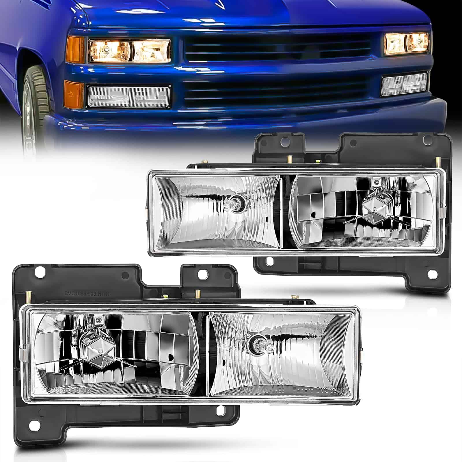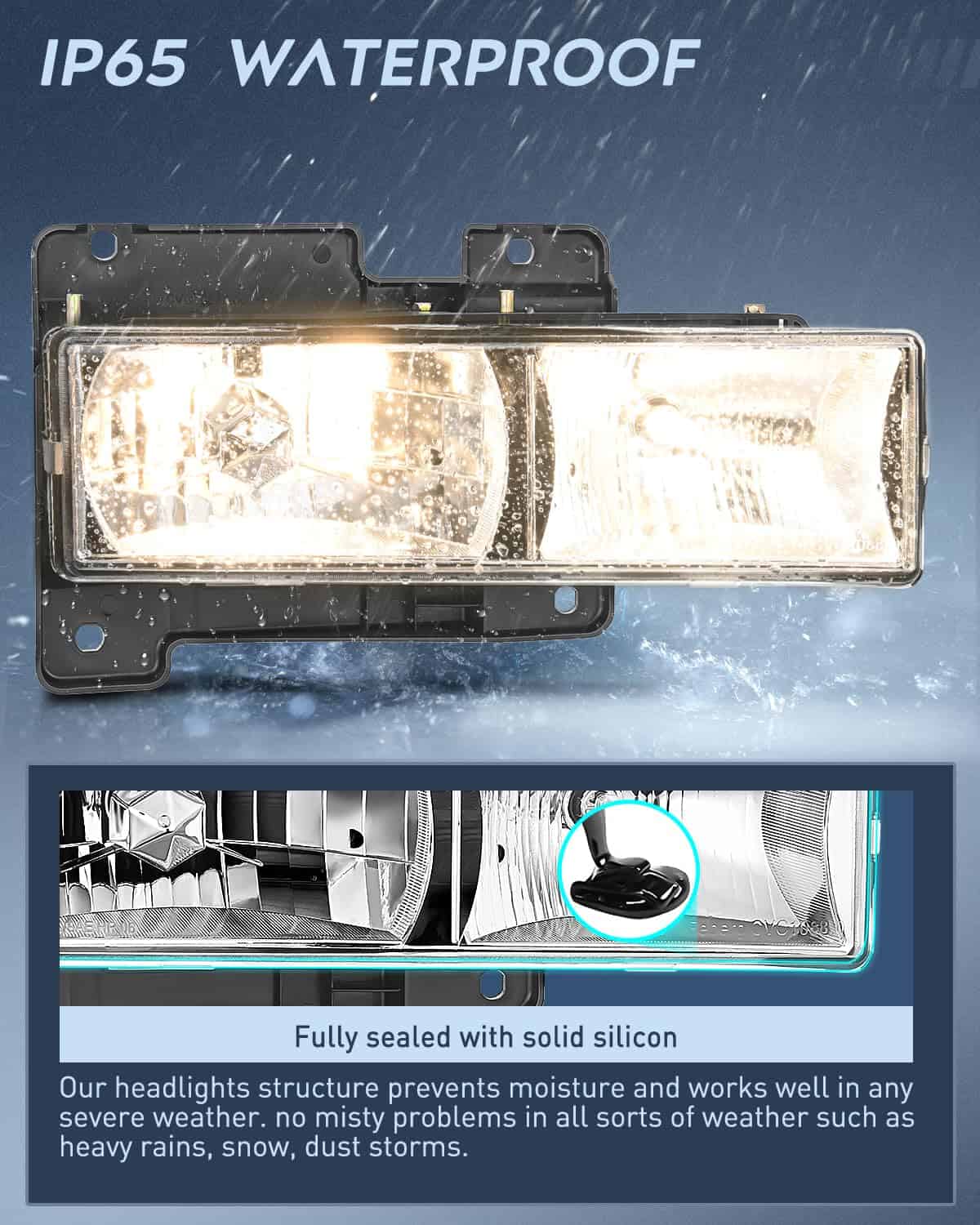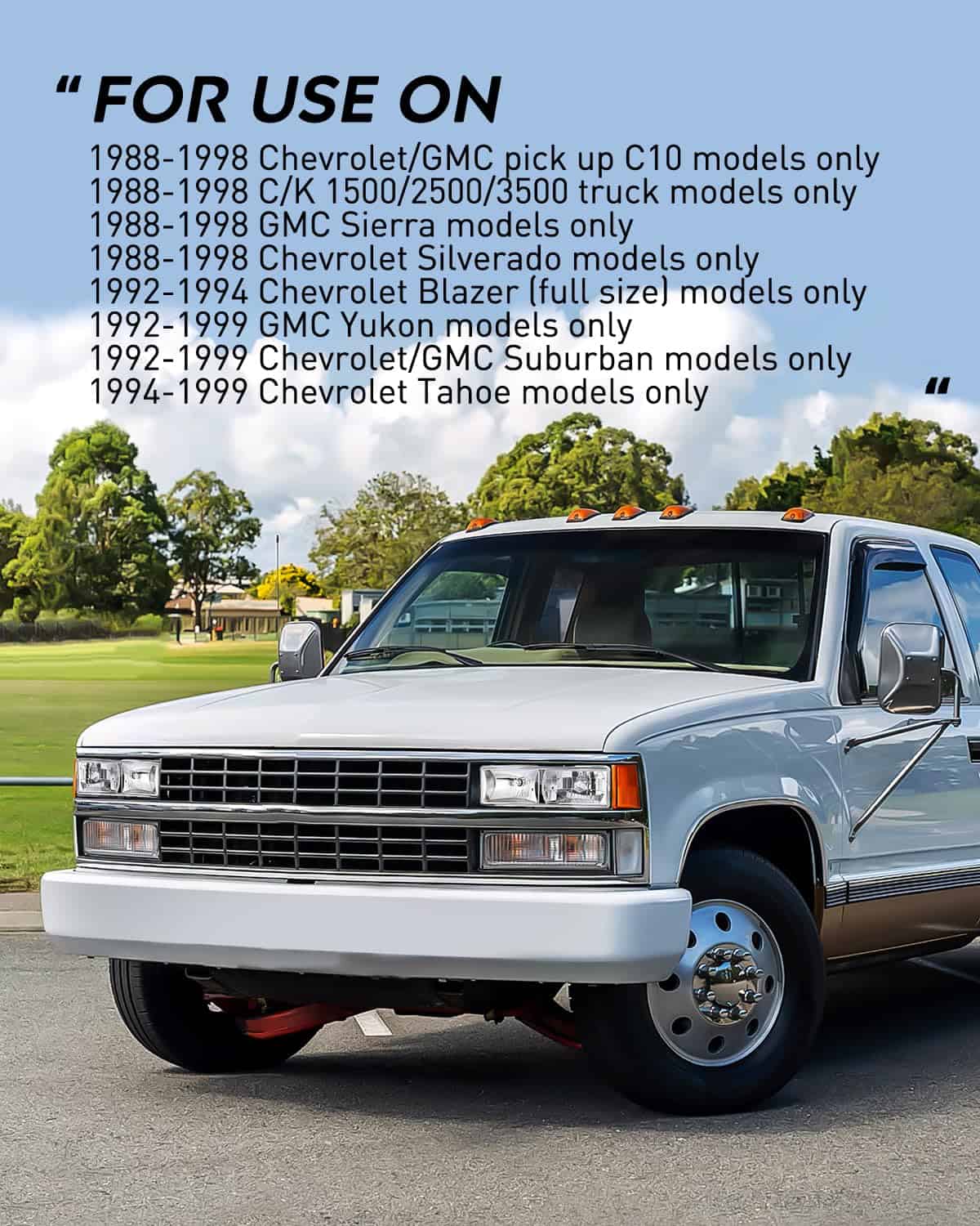 Compatibilidad: Los conjuntos de faros son compatibles con modelos de camiones de 1988-1998 GMC Sierra, 1988-1998 Chevrolet Silverado, 1988-1998 Chevrolet/GMC pick up C10, 1988-1998 camiones C/K 1500/2500/3500, modelos 1992-1994 Chevrolet Blazer (tamaño completo), 1994-1999 Chevrolet Tahoe, 1992-1999 GMC Yukon, Chevrolet/GMC Suburban 1992-1999. No apto para la versión de SELLO DE VIGA. Tipo de bombilla de luz alta: 9005 Tipo de bombilla de luz baja: 9006. Las bombillas están incluidas.