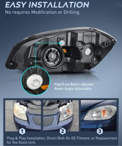 Durabilidad: La carcasa de alta resistencia soporta golpes y vibraciones. Con silicona completamente sellada que evita daños ambientales como congelación, niebla, decoloración, corrosión, y ofrece un servicio confiable en todo tipo de condiciones climáticas como lluvia, nieve o tormentas de polvo, mejorando la apariencia y seguridad de su automóvil. Cumplimiento con normas DOT y conducción segura: Para garantizar la seguridad al conducir tanto para usted como para las circunstancias de manejo entrantes, nuestros faros para Chevy Cobalt 2005 2006 2007 2008 2009 2010, Pontiac Pursuit 2005 2006 y Pontiac G5 2007 2008 2009 son compatibles con DOT & SAE. Nuestros faros brindan una visión más clara y lejana para ver animales salvajes, rocas caídas u otros obstáculos durante la noche. Reduzca la posibilidad de peligro. Instalación sencilla: Operación de enchufar y usar, ajuste directo OE y reemplazo para el faro original, fácil de instalar sin necesidad de taladrar o modificar. Incluye: 1 par de faros para Chevy Cobalt 2005 2006 2007 2008 2009 2010, Pontiac Pursuit 2005 2006, y Pontiac G5 2007 2008 2009 (lado del conductor y lado del pasajero). Las bombillas NO están incluidas. Garantía de 12 meses por Nilight.