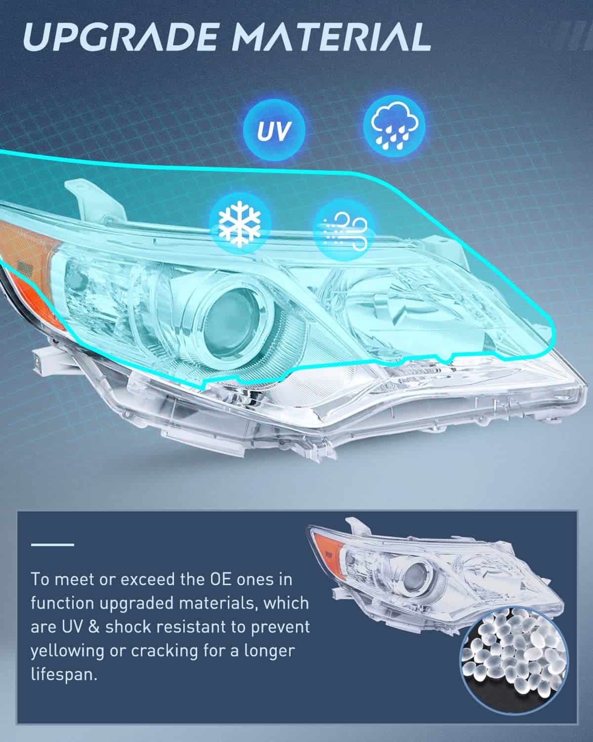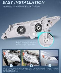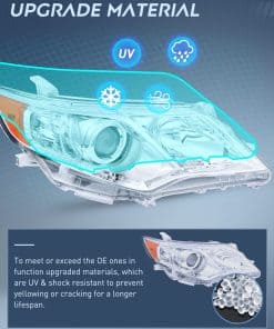 4. Cumplimiento con DOT y conducción segura: Para garantizar la seguridad al conducir para ti y las circunstancias de conducción entrantes, nuestros faros de Toyota Camry 2012 2013 2014 son compatibles con DOT y SAE. Nuestros faros proporcionan una visión más clara y lejana para ver los animales salvajes, rocas caídas u otros obstáculos por la noche. Reducir la posibilidad de peligro.