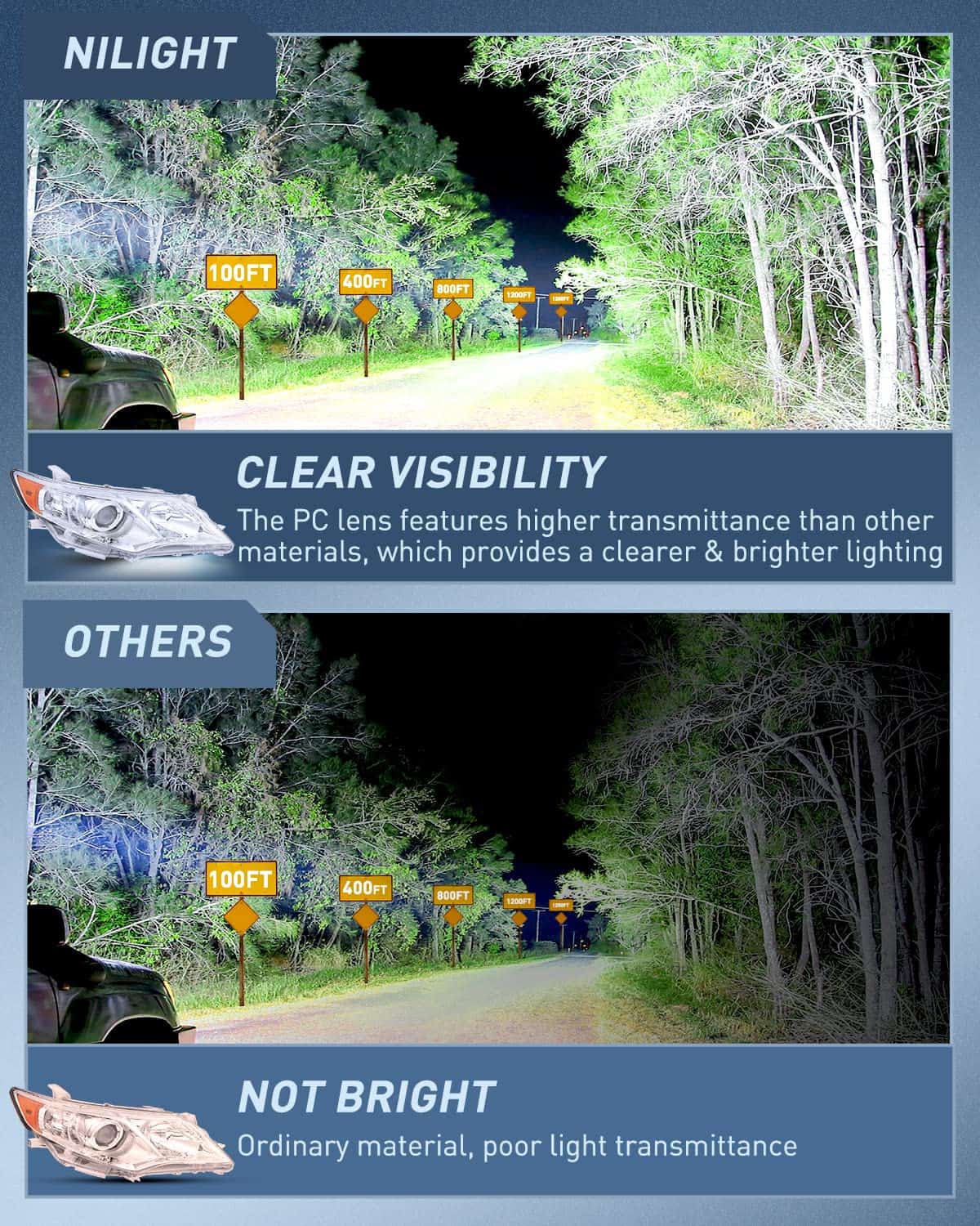 3. Durabilidad: La carcasa de alto impacto soporta golpes y vibraciones. Con sellado completo de silicona previene daños ambientales incluyendo congelación, neblina, decoloración, corrosión y proporciona un servicio confiable en todo tipo de condiciones climáticas como lluvia, nieve o tormentas de polvo, haciendo que tu coche se vea mejor y conduzca de manera más segura.