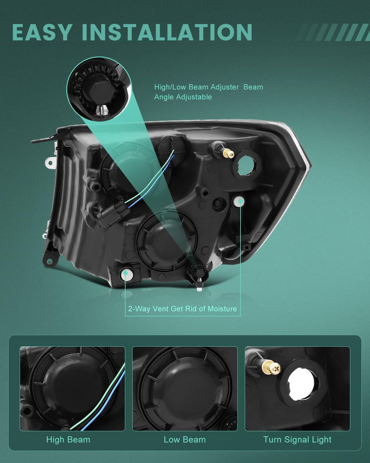 El proceso de instalación es sencillo y rápido, ya que son reemplazos directos de las piezas originales. No se requiere ninguna modificación adicional o perforaciones, lo que hace que la actualización de sus faros sea aún más conveniente. Fabricados con materiales de alta calidad como la carcasa de plástico ABS y la lente de policarbonato, estos faros son duraderos y resistentes a la intemperie.