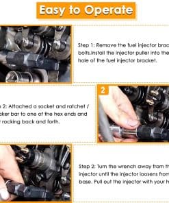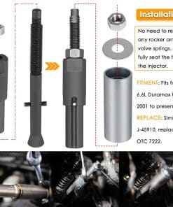 Fabricados con acero de alta calidad y recubrimiento negro para mayor durabilidad y resistencia a la corrosión, estos extractores de inyectores y la herramienta Remover/Instalador de Tubos de Inyector son garantía de años de uso sin problemas. Además, con nuestra garantía de 1 año, puedes estar seguro de que estás invirtiendo en un producto de calidad respaldado por un excelente servicio al cliente. No pierdas la oportunidad de solucionar tus problemas de inyectores de forma rápida y efectiva con este conjunto de herramientas de alta calidad para tu motor GM Duramax 6.6L.