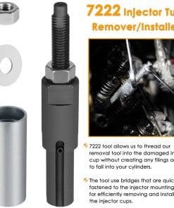 La Conjunto de Herramientas 6778 Extractor de Inyectores y 6779 Extractor de Inyectores, Herramienta 7222 Remover/Instalador de Tubos de Inyector para GM 6.6L Duramax Diesel es la solución perfecta para la extracción de inyectores de motores GM Duramax 6.6L. Con la herramienta 7222, podrás quitar y reinstalar los tubos de inyector de forma sencilla y eficiente. Los extractores de inyectores 6778 y 6779 te permitirán extraer los inyectores de la culata con total seguridad y precisión, sin dañar el casquillo del inyector.