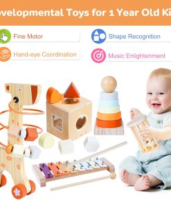 Estos juguetes de actividades de madera están destinados a construir los sentidos de los niños, promover habilidades motoras finas, coordinación mano-ojo, reconocimiento de formas / colores y conteo numérico. Son un juguete de educación temprana completo para la visión, el sonido, el tacto, las habilidades motoras finas, la resolución de problemas y el pensamiento lógico. Ideales como regalos para niños y niñas de 1, 2 y 3 años.