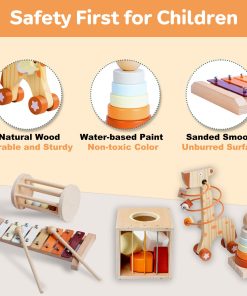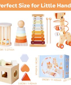 Además, los instrumentos musicales de aprendizaje temprano incluidos en el conjunto son ideales para desarrollar el ritmo y las habilidades musicales de los niños. Los sonidos de los sonajeros de madera atraerán la atención de los bebés y los ayudarán a desarrollar la sensibilidad musical y los intereses hacia la música.