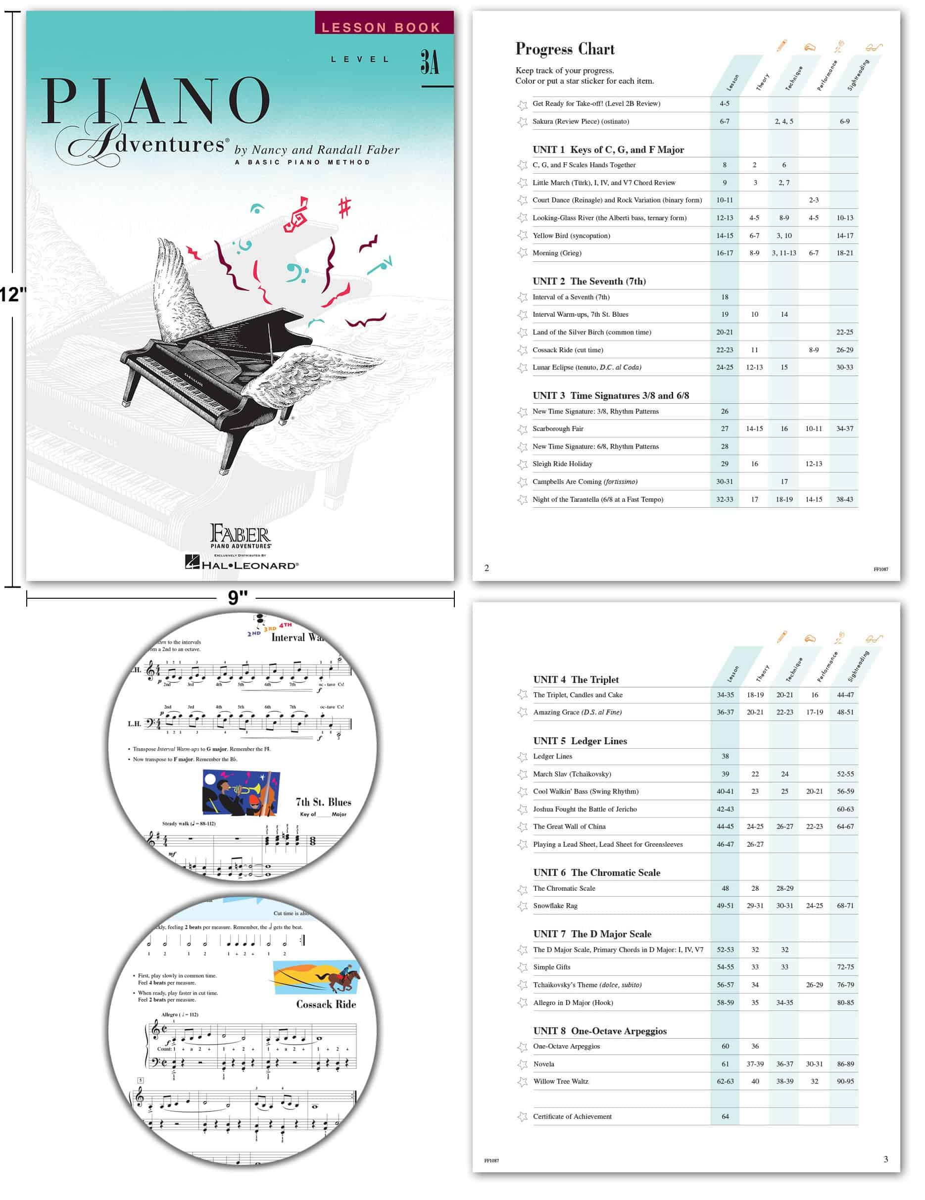 El Libro de Lecciones de Nivel 3A introduce las firmas de tiempo 3/8 y 6/8 y el trío. Los estudiantes aprenden la escala cromática, la séptima, los arpegios de una octava y exploran la tonalidad de Re mayor. Incluye: Amazing Grace Campbells are Coming Cool Walkin� Bass Cossak Ride Echoes of the Harp Eine Kleine Nachtmusik Ice Dancing Joshua Fought the Battle of Jericho Land of the Silver Birch Looking-Glass River Lunar Eclipse March Slav y más. El Libro de Técnica y Artística de Nivel 3A Los libros de Técnica y Artística combinan dos elementos esenciales de la habilidad técnica pianística y la interpretación artística. Este enfoque integrado y suave desarrolla los elementos básicos de la técnica del piano, siempre dirigidos hacia un objetivo artístico. El Libro de Teoría de Nivel 3A Diseñado para ser utilizado en conjunto con los otros libros de 3A, este libro refuerza los conceptos de teoría a través de actividades de escritura, lectura a primera vista y entrenamiento auditivo. El Libro de Interpretación de Nivel 3A Este libro ofrece una colección de piezas emocionantes que refuerzan efectivamente los conceptos introducidos en este nivel. Las encantadoras letras y dúos de profesores enriquecen la experiencia de aprendizaje. Incluye: