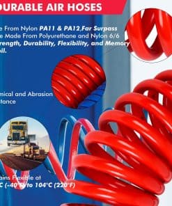 2. Kit de línea de aire de alta calidad – Hecho con tubería de nylon virgen premium sin procesar asegura la longevidad y resistencia del conjunto de bobinas/mangueras de freno de aire, las mangueras de línea de aire están diseñadas para resistir condiciones adversas, incluidas temperaturas extremas y productos químicos dañinos, haciendo que el kit de línea de aire sea adecuado para las exigentes condiciones de la industria del transporte.