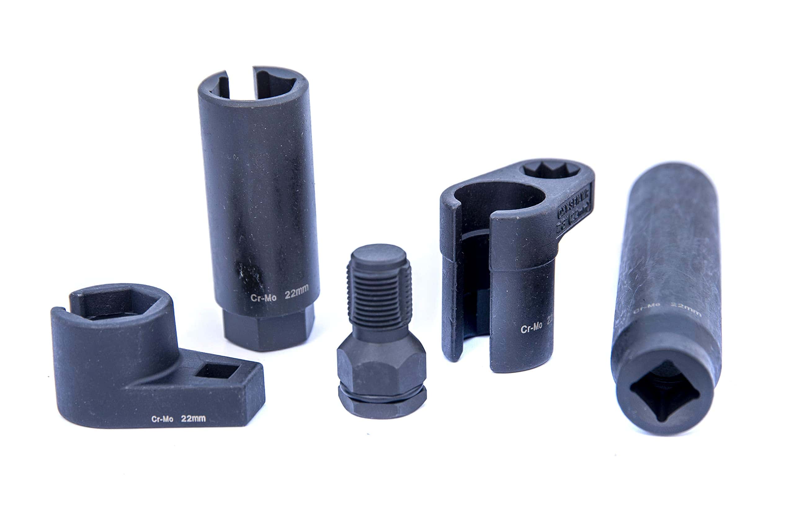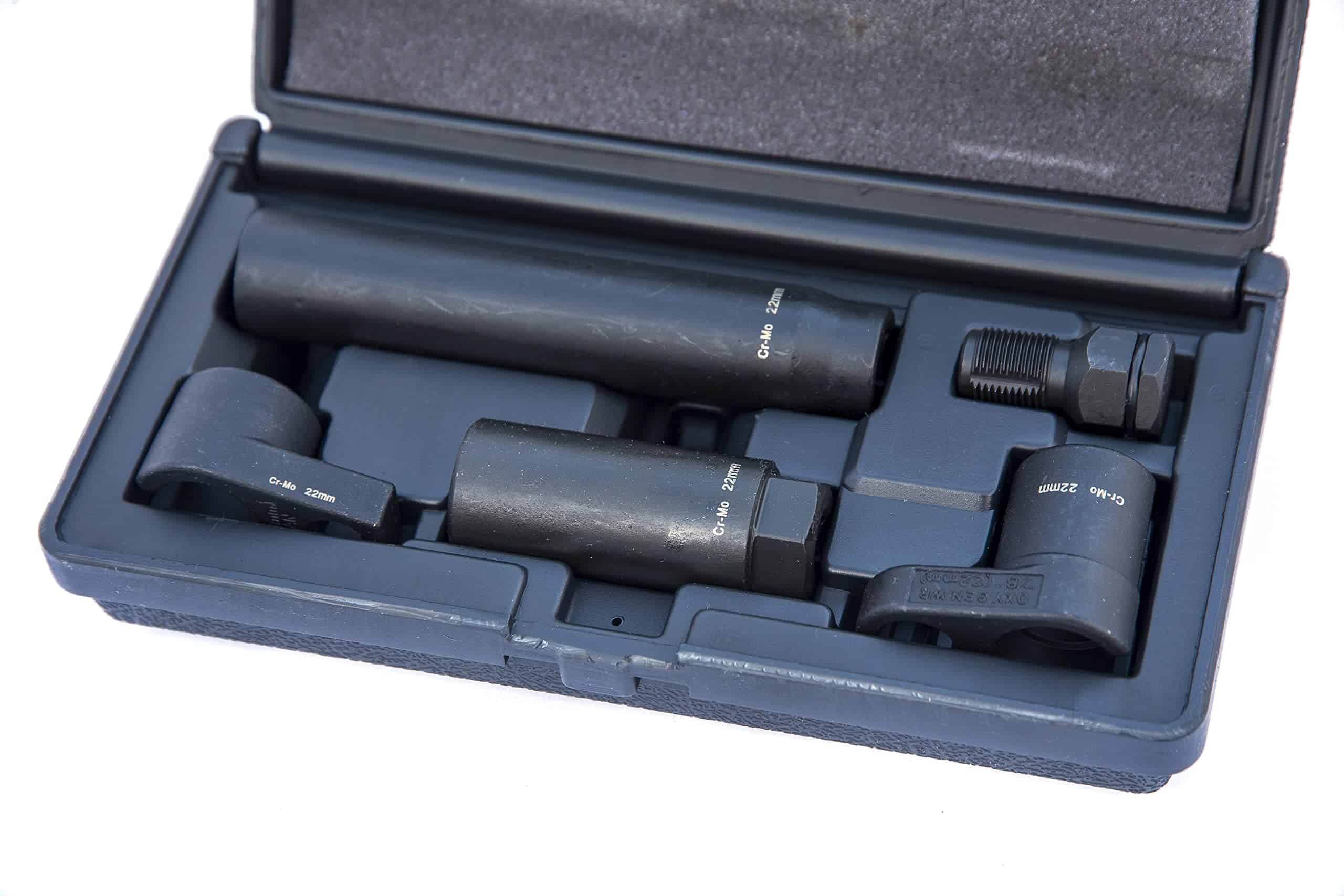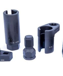 Conjunto de Llaves de Sensor Lambda – 22mm 5 Piezas Un robusto conjunto de 4 zócalos automotrices para un Sensor Lambda de 22mm, además de un Roscado Macho M18 x 1.5. Los zócalos están fabricados en Cromo Molibdeno. Resistencia superior a la corrosión Mejora en la torsión y propiedades de desgaste Lo que se incluye en el kit: ITC4993A-A 22mm x 80mm ITC4993A-B 22mm x 50mm ITC4993A-C 22mm x 150mm ITC4993A-D 22mm x 30mm ITC4993A-E Roscado Macho M18