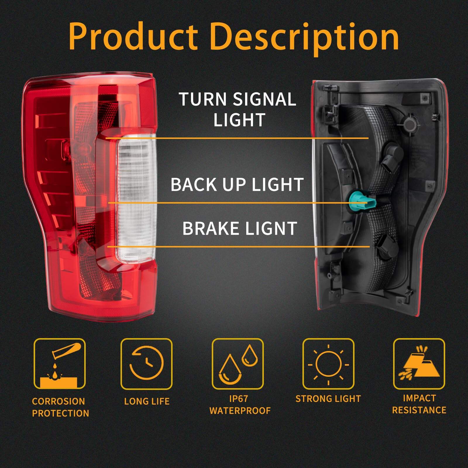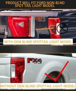 1. Aplicable: Compatible con Ford F250 F350 Super Duty 2017-2019. (¡Modelo de luz trasera incandescente de fábrica compatible sin monitor de punto ciego solamente!).