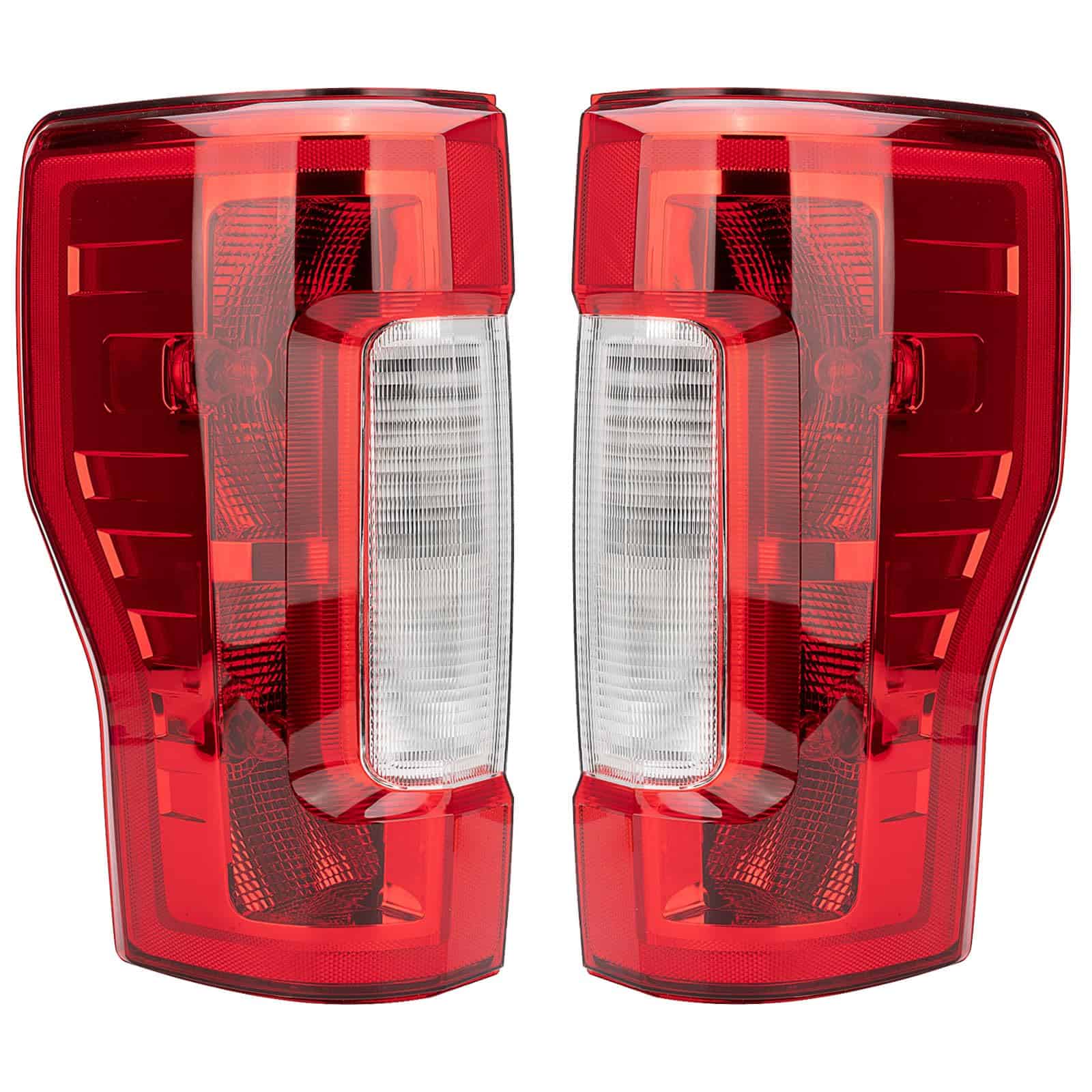 Conjunto de luces traseras compatible con 2017-2019 Ford F-250 F-350 Super Duty. Este conjunto de luces traseras está diseñado para ser compatible con el modelo incandescente de luz trasera de fábrica sin monitor de punto ciego. El número de pieza de repuesto para este conjunto de luces traseras incluye HC3Z13404D, HC3Z13405D, HC3Z13404F, HC3Z13405F, FO2801256, FO2800256. Este producto es de alta calidad y cumple o supera los estándares OEM. Está hecho de material plástico ABS resistente a la corrosión y al desgaste, con una lente roja transparente. La instalación es directa sin necesidad de guía o instrucciones. Si surge algún problema con el producto, contáctenos para recibir asistencia y resolver cualquier problema de calidad.
