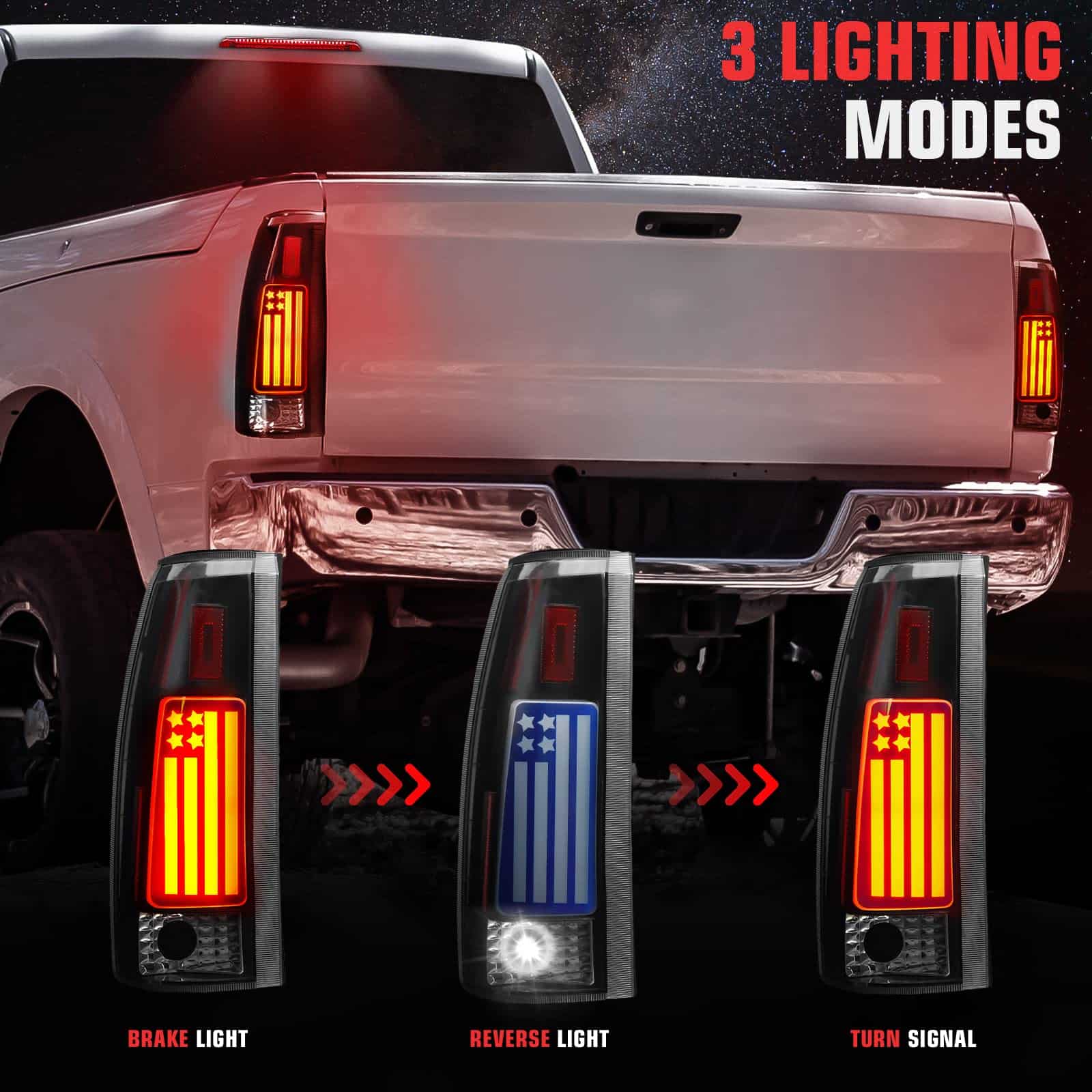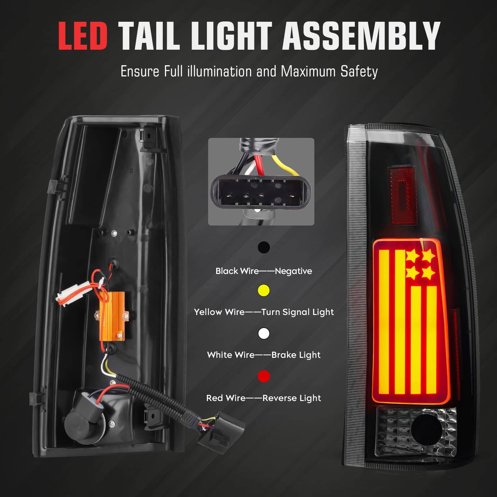Conjunto de luces traseras LED + lámpara de freno LED que se ajusta a modelos 1992-1999 de Chevy GMC C1500 C2500 Suburban Yukon Tahoe. Fuente de luz LED completa que proporciona tanto un aspecto deslumbrante como una iluminación excepcional en la parte trasera de su automóvil. Reemplazo directo atornillable para sus luces traseras originales, no se necesita cableado ni ningún otra modificación. Incluye 1 luz de freno LED tercera, 1 par de luces traseras (lado del conductor izquierdo y lado del pasajero derecho). Política de devolución de 30 días con garantía de 60 días. Consulte la descripción para conocer todas las aplicaciones de vehículos.