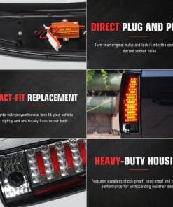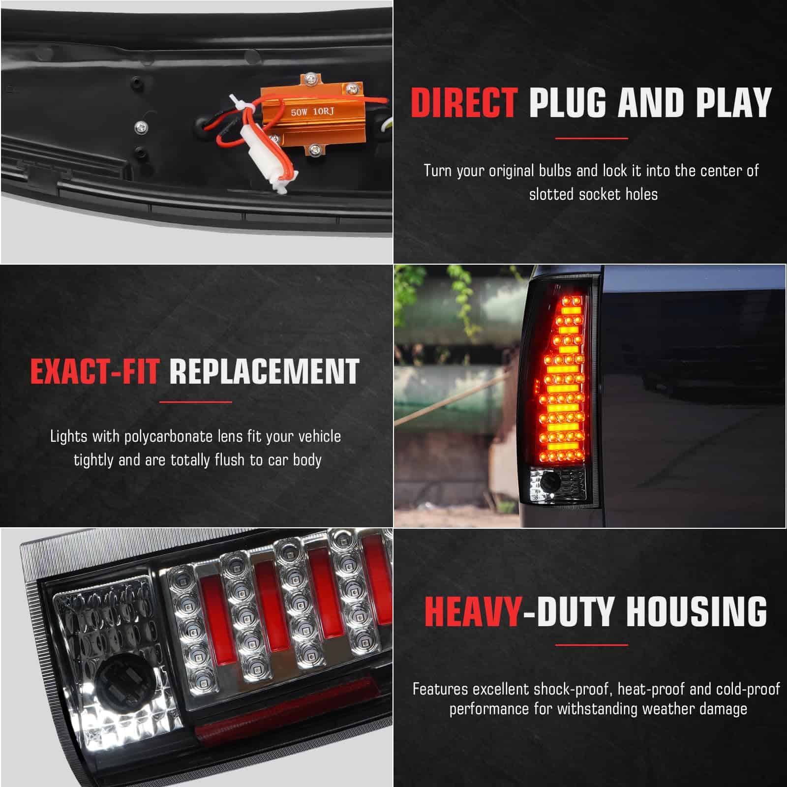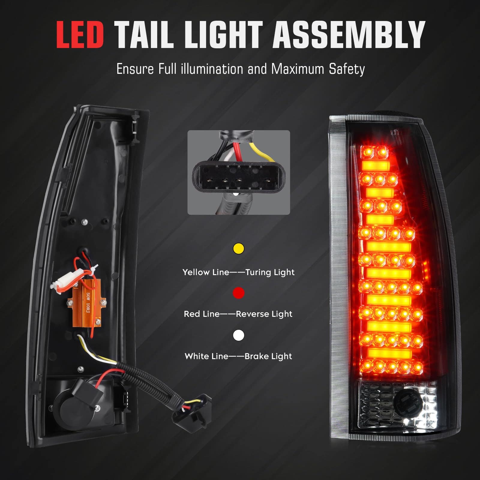 Conjunto de Luces Traseras Led + Tercera Luz de Freno Trasera fit para: 1995-1999 Chevrolet Tahoe; 1992-1999 Chevrolet C1500 C2500 Suburban; 1992-1999 GMC C1500 C2500 Suburban; 1992-1999 GMC Yukon; 1999-2000 Cadillac Escalade. Instalación simple de enchufar y usar, diseñada para una instalación rápida y fácil. No es necesario realizar modificaciones, se instalan directamente en la ubicación de fábrica. Fuente de luz LED completa, proporcionando tanto un aspecto deslumbrante como una iluminación excepcional en la parte trasera de su automóvil. Política de devolución de 30 días con garantía de 60 días. Por favor, consulte la descripción para todas las aplicaciones de vehículos.