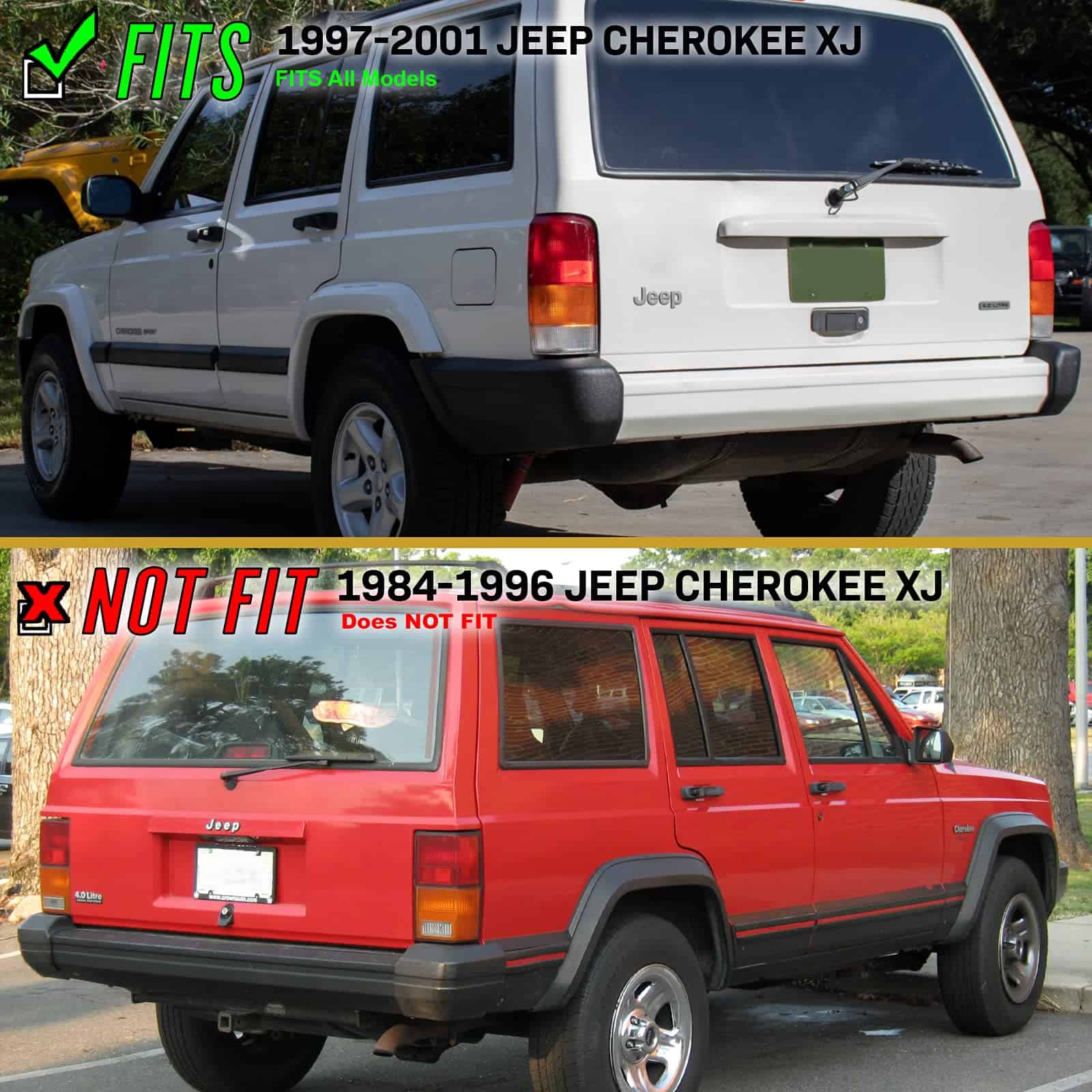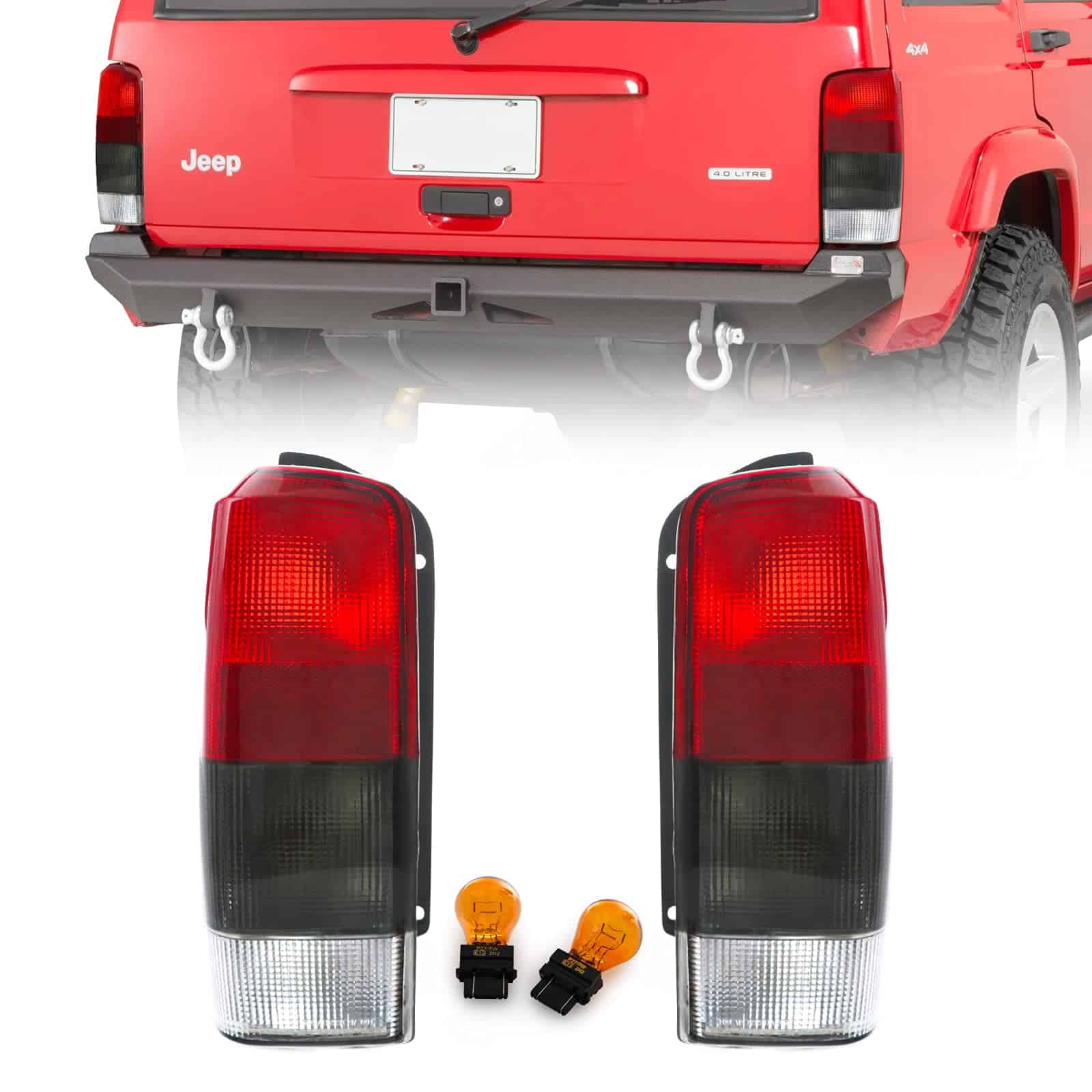 Esta publicación es para un NUEVO conjunto (2 piezas) de luces traseras Rojo/Ahumado. El artículo es compatible con Jeep Cherokee 1997-2001 (¡solo chasis XJ!). Diseño de Lente Rojo/Ahumado/Claro único: esto proporciona un aspecto nuevo y limpio después de la instalación. La lente de policarbonato proporciona protección UV y resistencia a impactos. ¡No se necesita volver a cablear, es un verdadero enchufe y juega! Sin errores después de la instalación. Aunque es posible el bricolaje, se RECOMIENDA la instalación PROFESIONAL, ya que no se incluirán instrucciones. El producto es un reemplazo DIRECTO DE FÁBRICA OE para los años / fabricante / modelo / recorte ESPECIFICADO, por lo tanto, cómpralo en consecuencia.