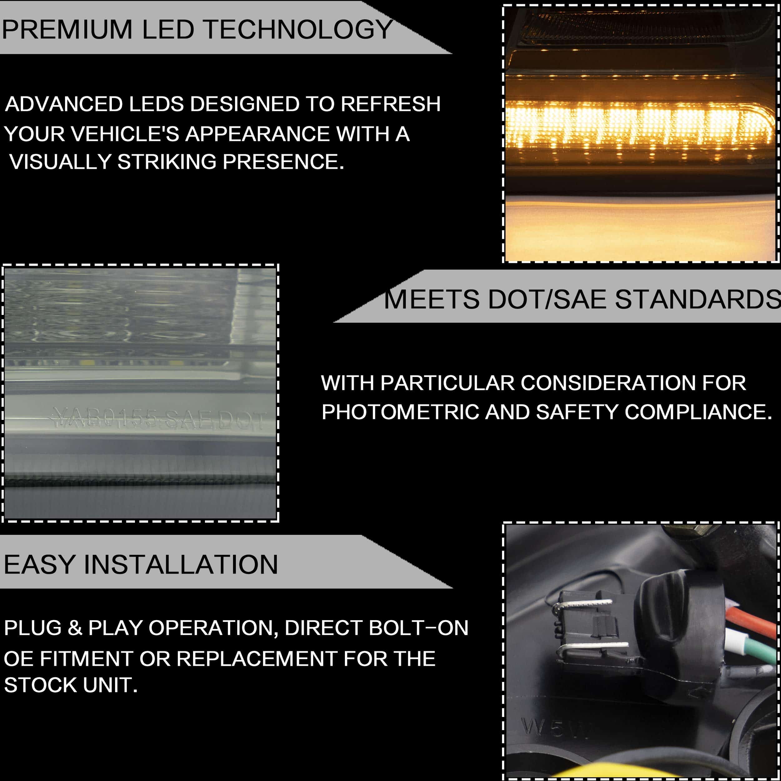 2. Plug and Play: las lámparas traseras son fáciles de instalar. Diseñadas para ser un reemplazo exacto de sus luces de fábrica. No se requiere empalme. Se recomienda la instalación profesional. Si tiene problemas con la instalación, por favor confirme con nosotros.