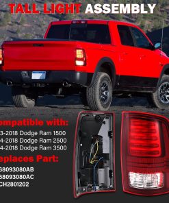 Conjunto de luz trasera LED compatible con Ram 1500 2013-2018, Ram 2500 3500 2014-2018. Lado derecho del pasajero. Reemplaza 68093080AB 68093080AC CH2801202. Fabricante Part Number 68093080AB, 68093080AC, CH2801202 para Ram 1500 y Ram 2500 3500. Cuatro modos de luz: luces de conducción diurna, luces de freno, luces de señal de giro y luces de marcha atrás. Hecho de material de alta calidad con resistencia al agua, desgaste y corrosión. Fácil instalación sin necesidad de cortar o perforar.